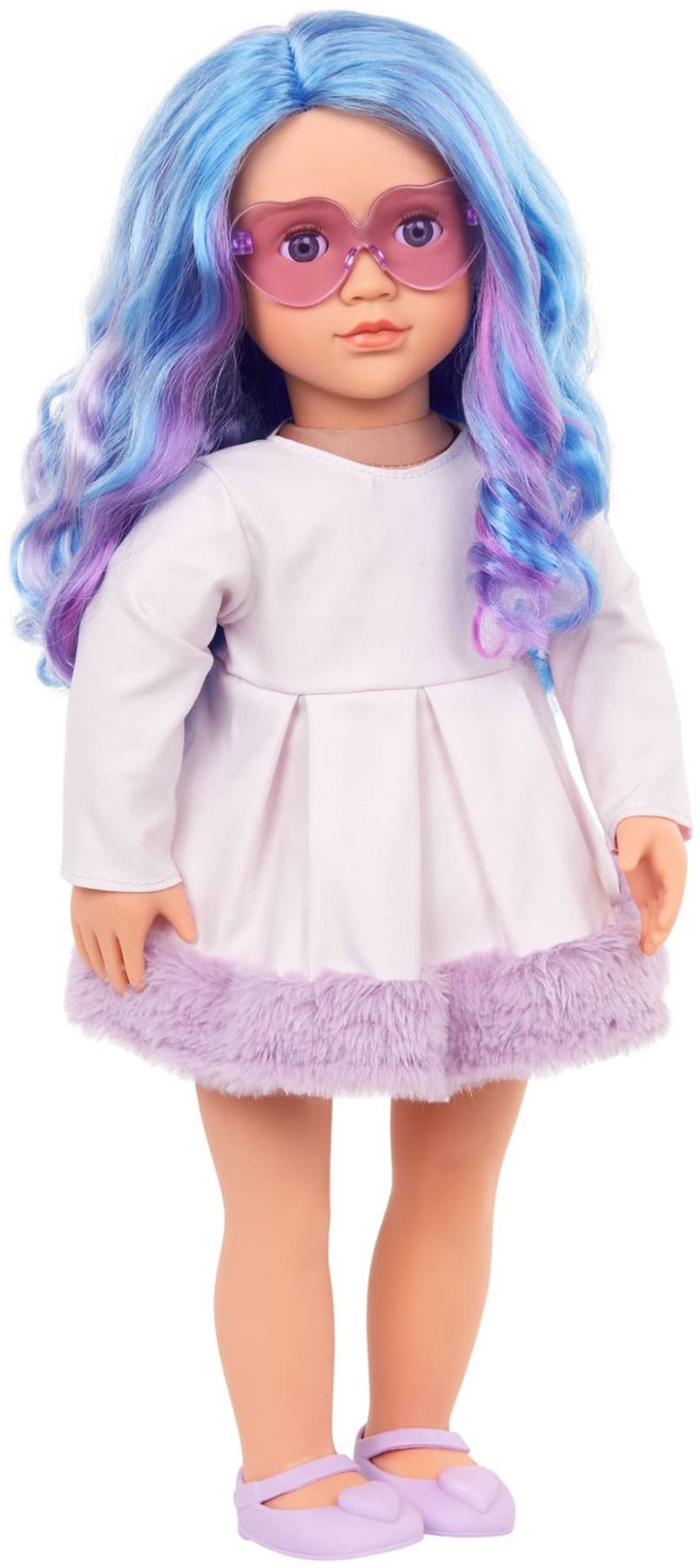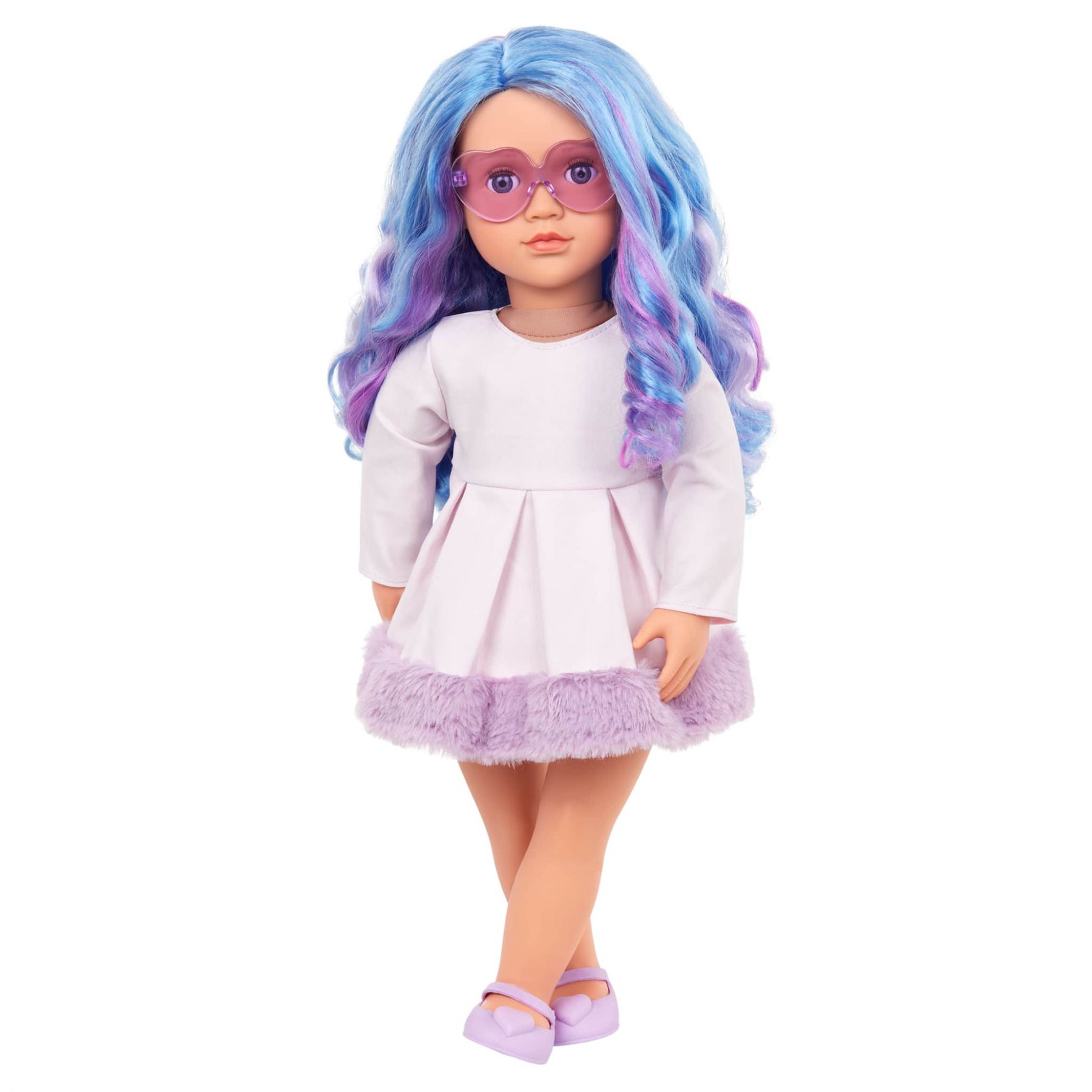 Лялька Our Generation Вероніка з різнокольоровим волоссям – це справжня ікона стилю з дивовижним кольоровим волоссям! Її довгі хвилясті пасма переливаються блакитними, фіолетовими та рожевими відтінками, а яскраво-блакитні очі з ефектом відкривання-закривання роблять її образ ще виразнішим.