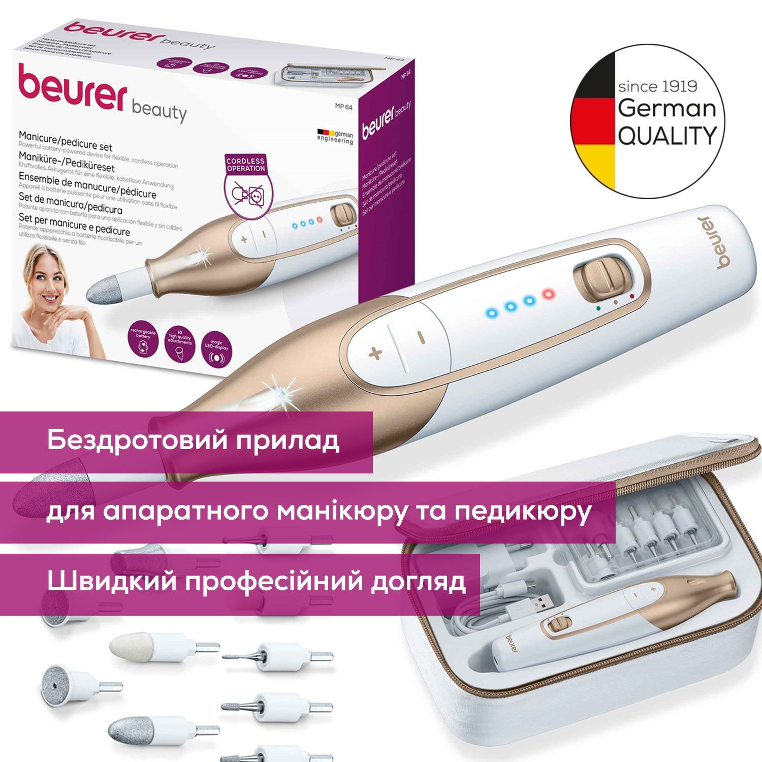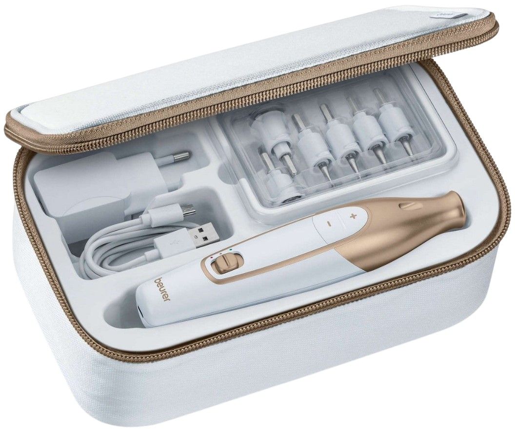 Манікюрний набір Beurer, аккумул., насадок-10, з підсвіткою, біло-золотий