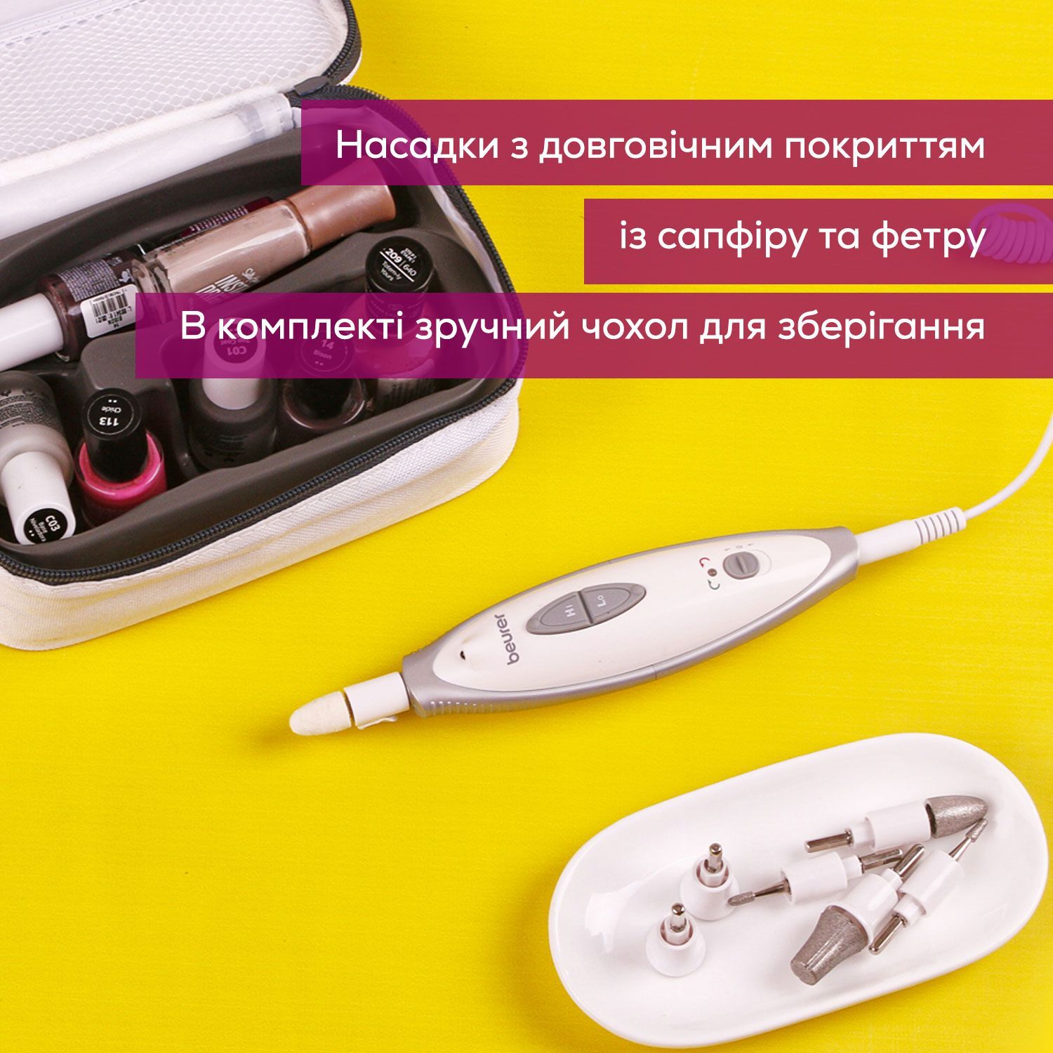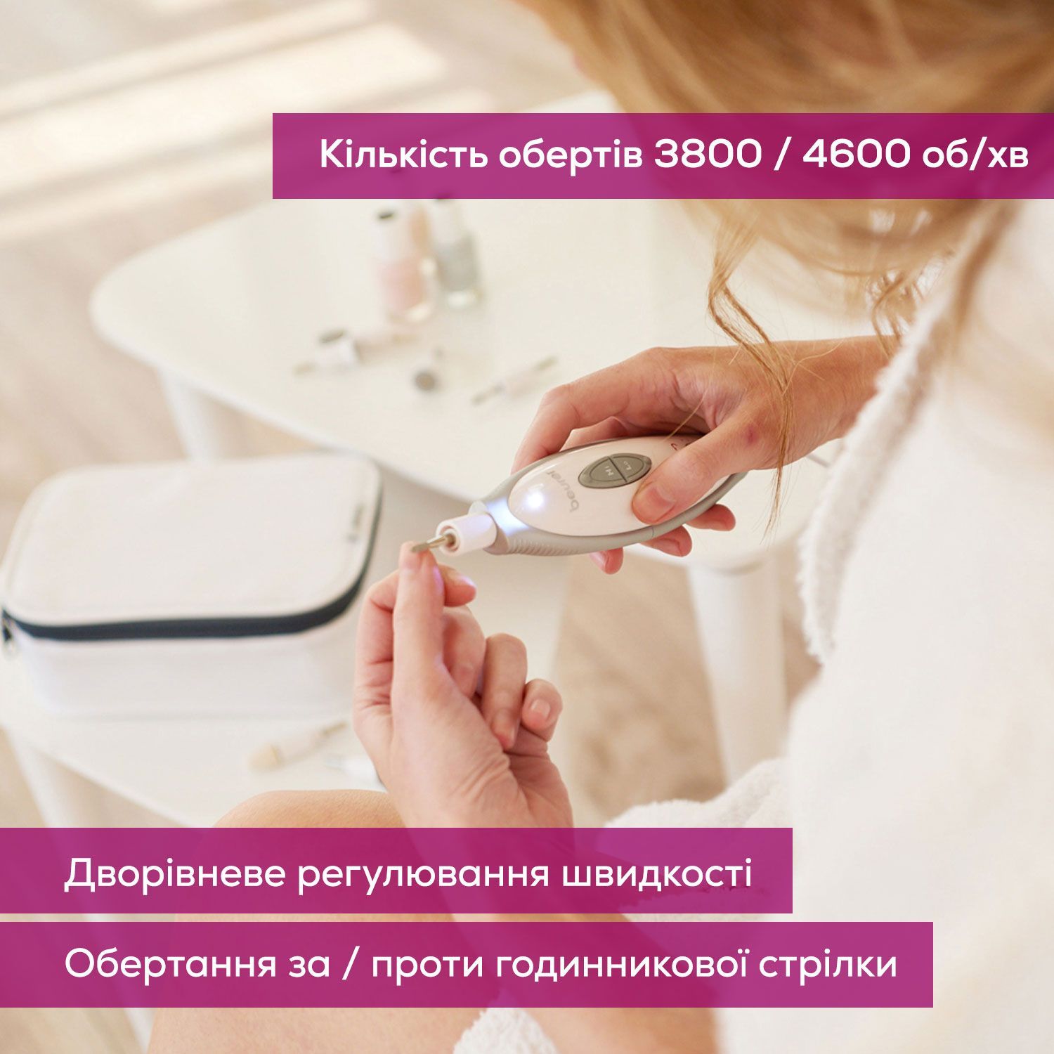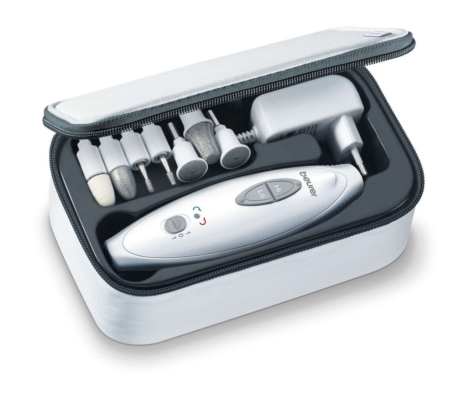 Манікюрний набір Beurer, від мережі, насадок-7, з підсвіткою, біло-сірий