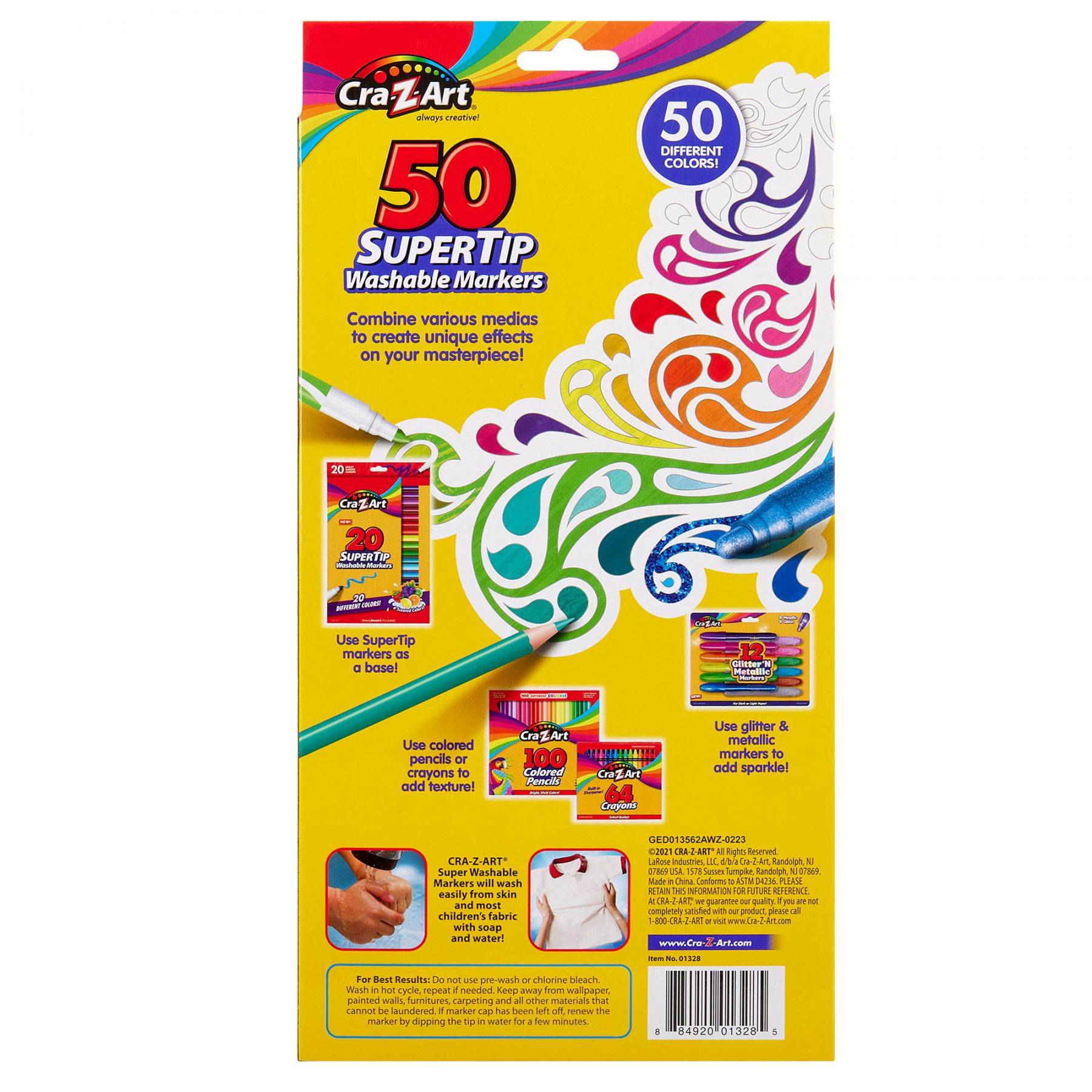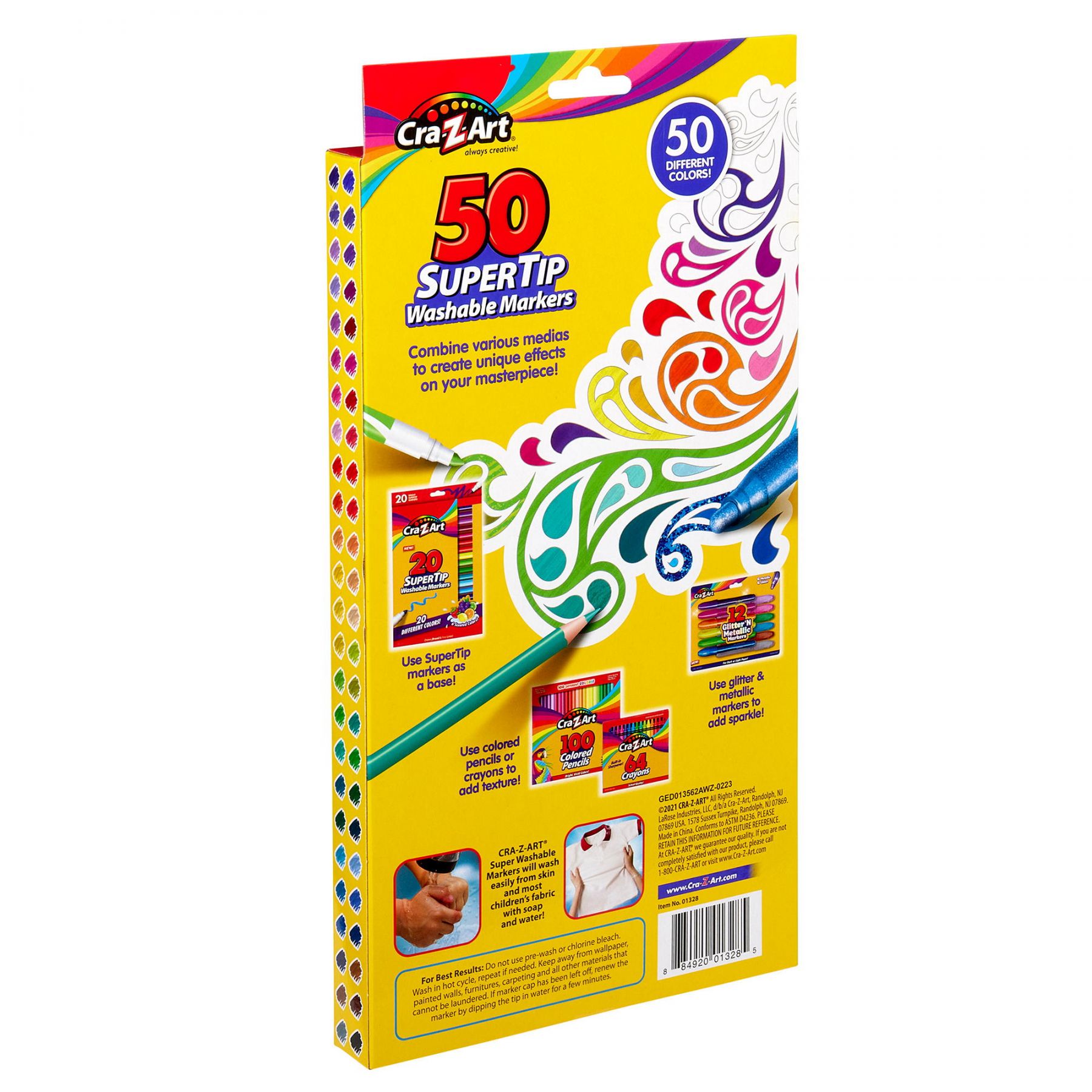 Набір маркерів Cra-Z-Art, що легко змиваються - це унікальний набір із 50 маркерів з яскравими та стійкими кольорами, що включає 12 ароматизованих маркерів. Ці маркери пропонують неймовірне розмаїття для творчості та надихають дітей на створення барвистих малюнків. Супертонкі наконечники ідеально підходять як для детального промальовування, так і для зафарбовування великих ділянок. Формула, що змивається, робить їх зручними та безпечними у використанні - чорнило легко видаляється зі шкіри, одягу та меблів.