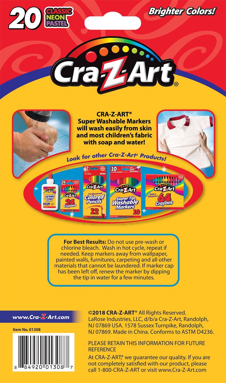 Набір легкозмивних маркерів Cra-Z-Art 20шт - це набір із 20 тонких змивних маркерів, що ідеально підходить для створення деталізованих малюнків, розфарбовування і каліграфії. Завдяки тонкому наконечнику, маркери дають змогу промальовувати акуратні лінії та працювати з дрібними елементами. Змивна формула забезпечує легке видалення чорнила зі шкіри, одягу та інших поверхонь, що робить їх зручними та безпечними для дітей. Насичені кольори надихають на творчість, а компактне паковання дає змогу зберігати маркери в порядку та брати їх із собою куди завгодно.