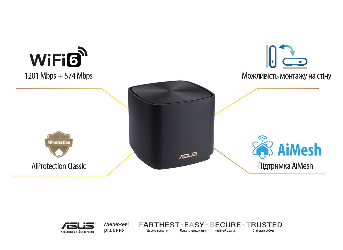 Особливості:2x2 MIMO, Мобільний додаток, Кнопки: Wi-Fi вкл/викл., WPS, RESET, POWER, З підтримкою технології AiMesh, Кнопка WPS, Traditional QoS, Wi-Fi 6, Support Alexa skill