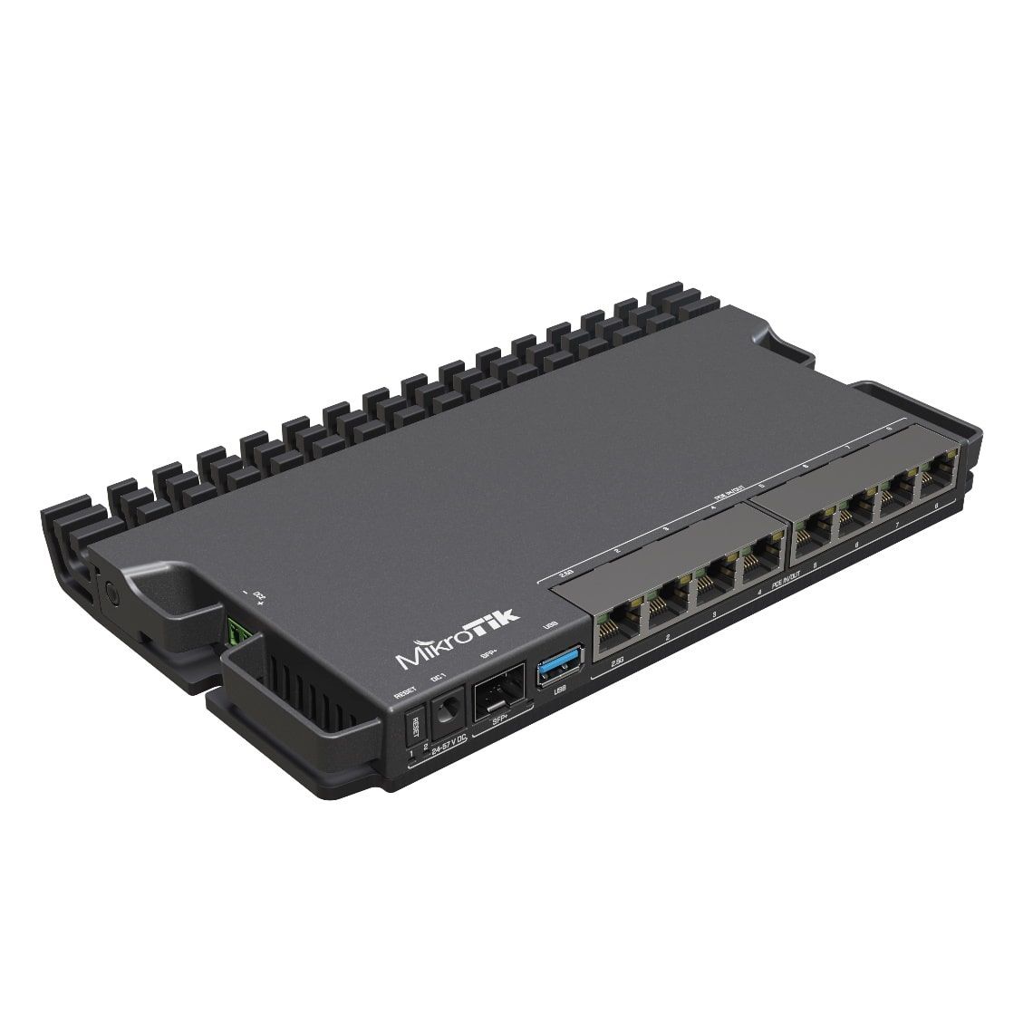 MikroTik RB5009UPr+S+IN - нова версія популярного надпотужного маршрутизатора MikroTik RB5009 з PoE in та PoE out на всіх портах. Ідеально підходить для малих та середніх інтернет-провайдерів. 2.5 Gigabit Ethernet та 10 Gigabit SFP+, безліч варіантів живлення.