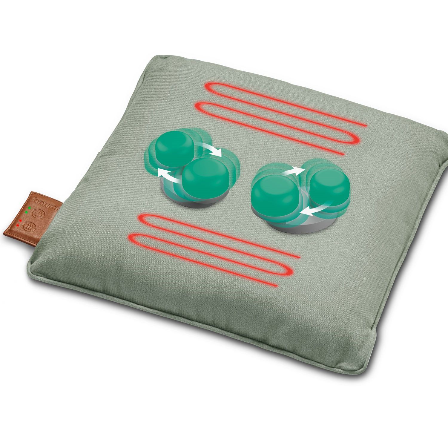 Масажна подушка Beurer для плечей, шиї, спини, ніг, літій- іонний акум., змінний чохол, сірий