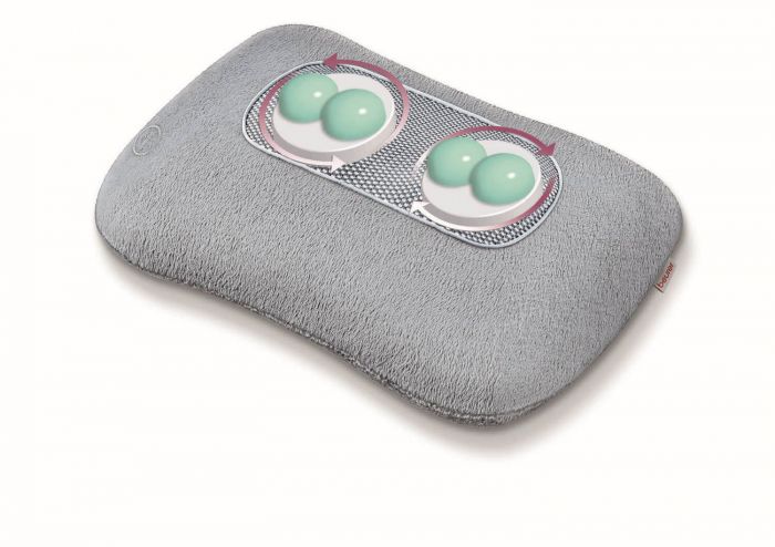 Масажна подушка Beurer для плечей, шиї, спини та ніг, від мережі, вага-1.34кг, 4 головки шиацу, підігрів, сірий