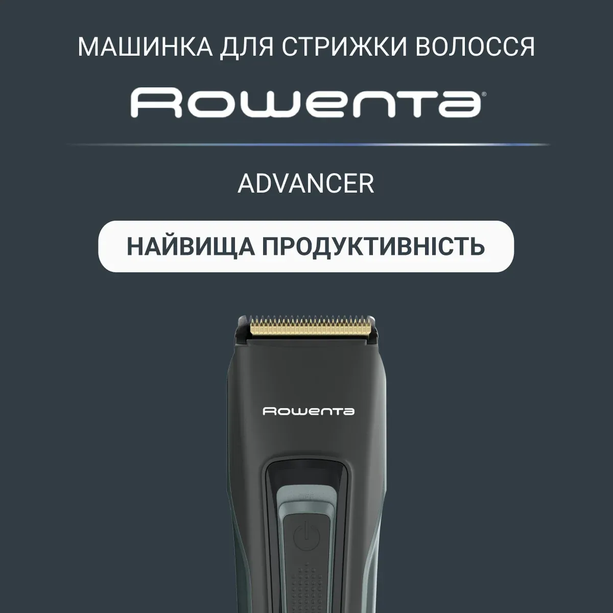 Машинка для стрижки Rowenta Advancer, для бороди, вусів, голови, мережа+акум., роторний мотор, насадок-2, кейс, титан.напил., темно-зелений