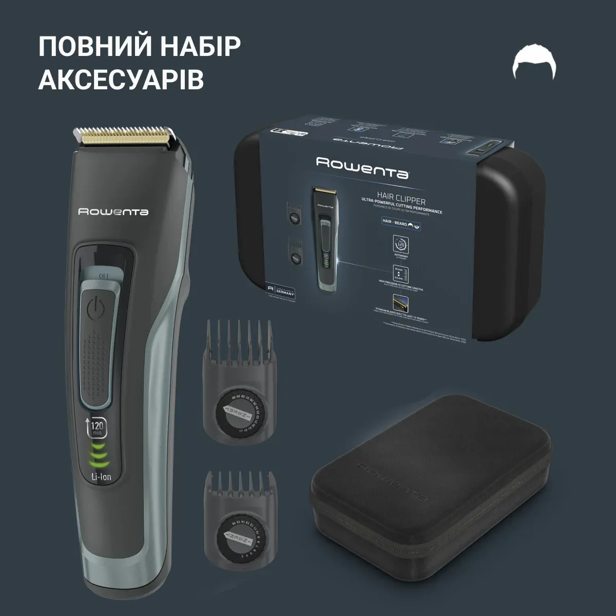 Rowenta Advancer TN5224E0 — машинка для стрижки з титановими самозаточувальними лезами для точного зрізу навіть густого волосся. Має 2 регульовані насадки з 29 варіантами довжини, до 120 хвилин автономної роботи, швидке заряджання та довговічність лез до 15 років. Ідеальний інструмент для створення індивідуального стилю з професійною точністю.