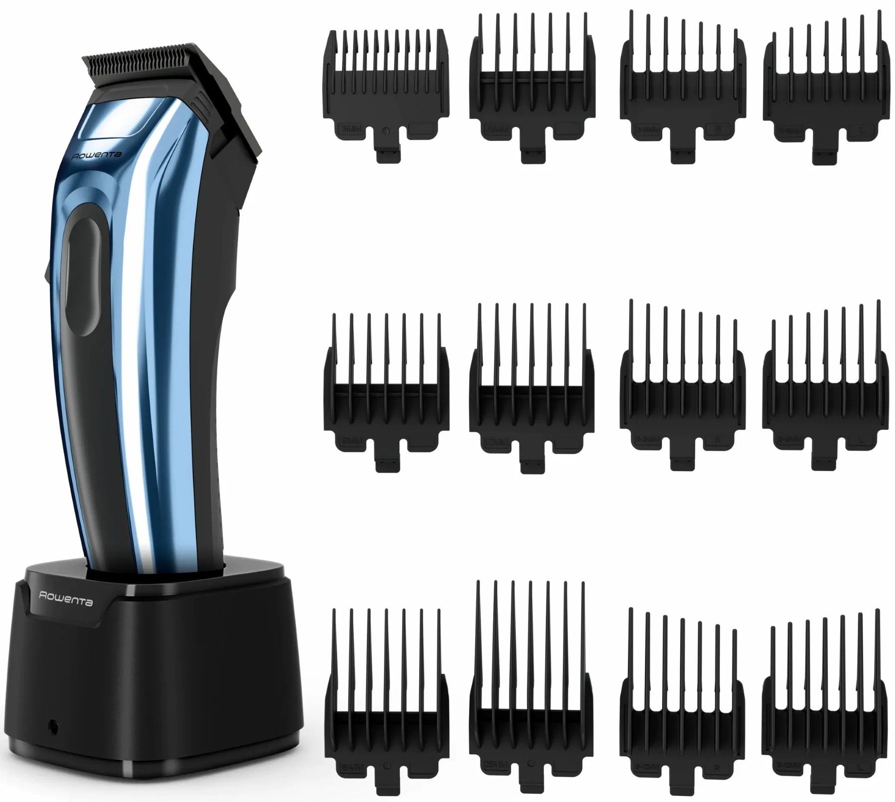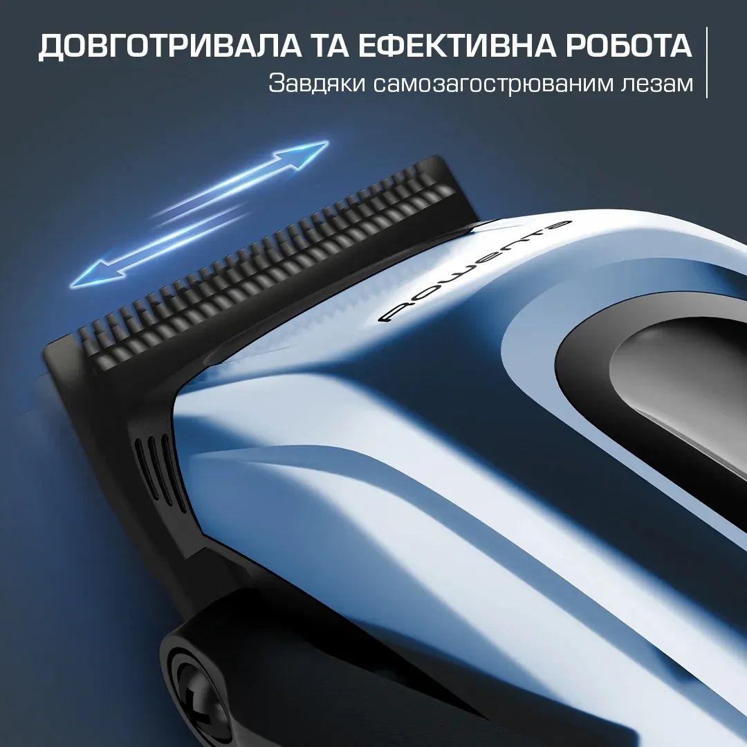 Машинка для стрижки Rowenta Barber Experience, для голови, мережа+акум., роторний мотор DC, насадок-12, нержавіюча сталь з покриттям DLC, синій