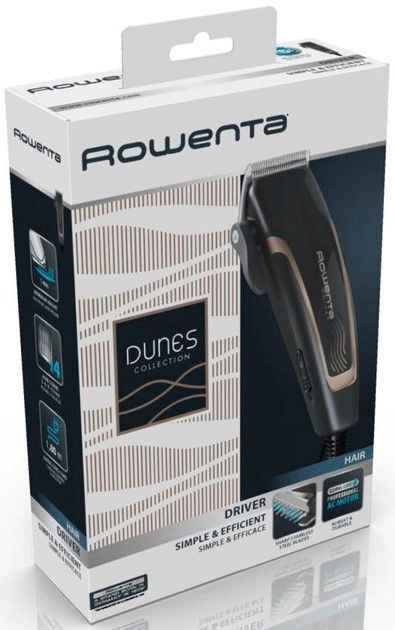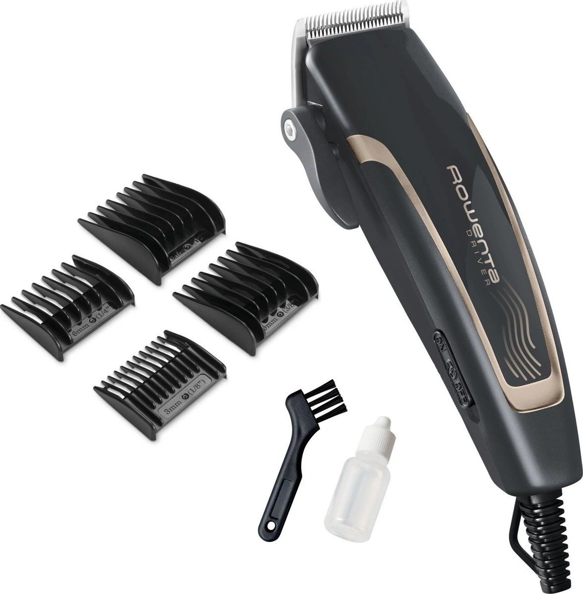 Машинка для стрижки Rowenta Driver, від мережі, роторний мотор, насадок-3, нерж.сталь., чорний