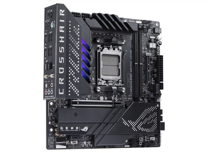 ROG Crosshair X670E Gene оснащено системою живлення з шістнадцяти блоків, спеціально створеною для роботи з багатопоточною потужністю процесорів AMD Ryzen™ серії 7000. У поєднанні з оптимізованим компонуванням пам’яті DDR5 ця спритна потужна система забезпечує надшвидкісну продуктивність. А ROG дозволяє максимально легко отримати доступ до своєї природної переваги завдяки набору унікального програмного забезпечення та мікропрограмних технологій, призначених як для початківців, так і для ветеранів.