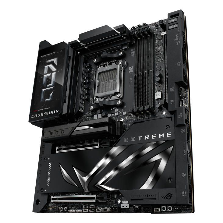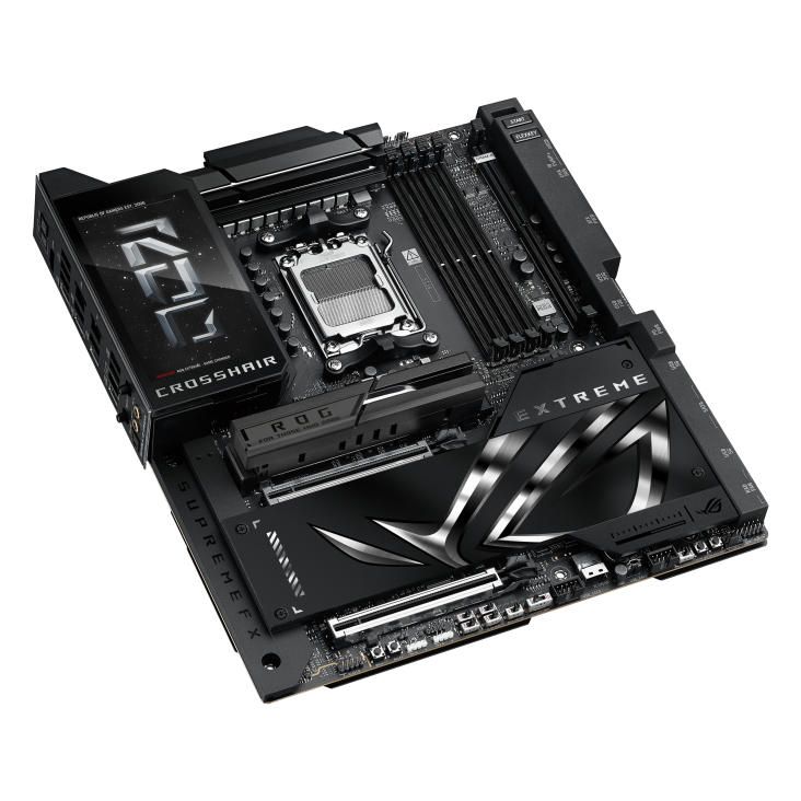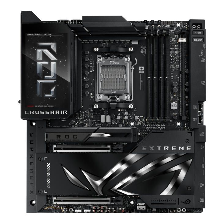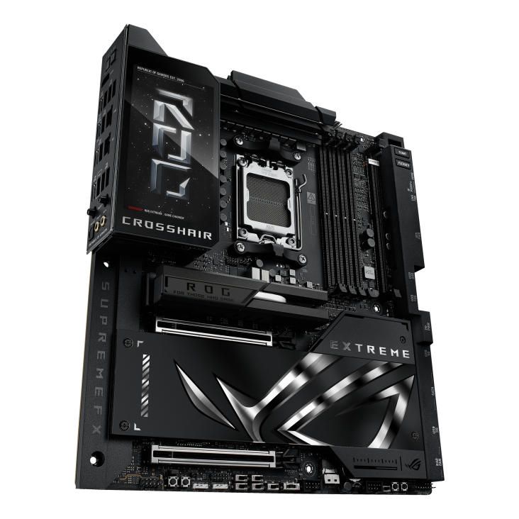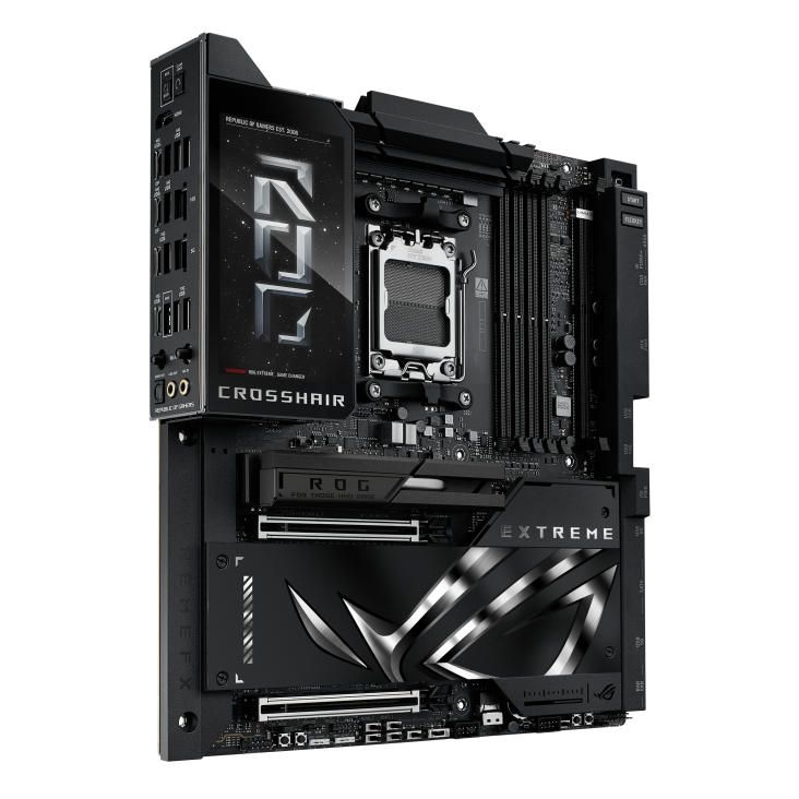 ROG Crosshair X870E Extreme – це флагманська материнська плата серії AMD Ryzen 9000, розроблена для найвимогливіших користувачів. Вона забезпечує відмінну основу для процесорів AM5, пам'яті DDR5 і компонентів PCIe 5.0, гарантуючи максимальну продуктивність і готовність до майбутніх викликів. Її широкі можливості підключення включають USB4, а вбудований 5-дюймовий РК-дисплей пропонує унікальний спосіб контролю продуктивності системи або додавання індивідуального стилю.