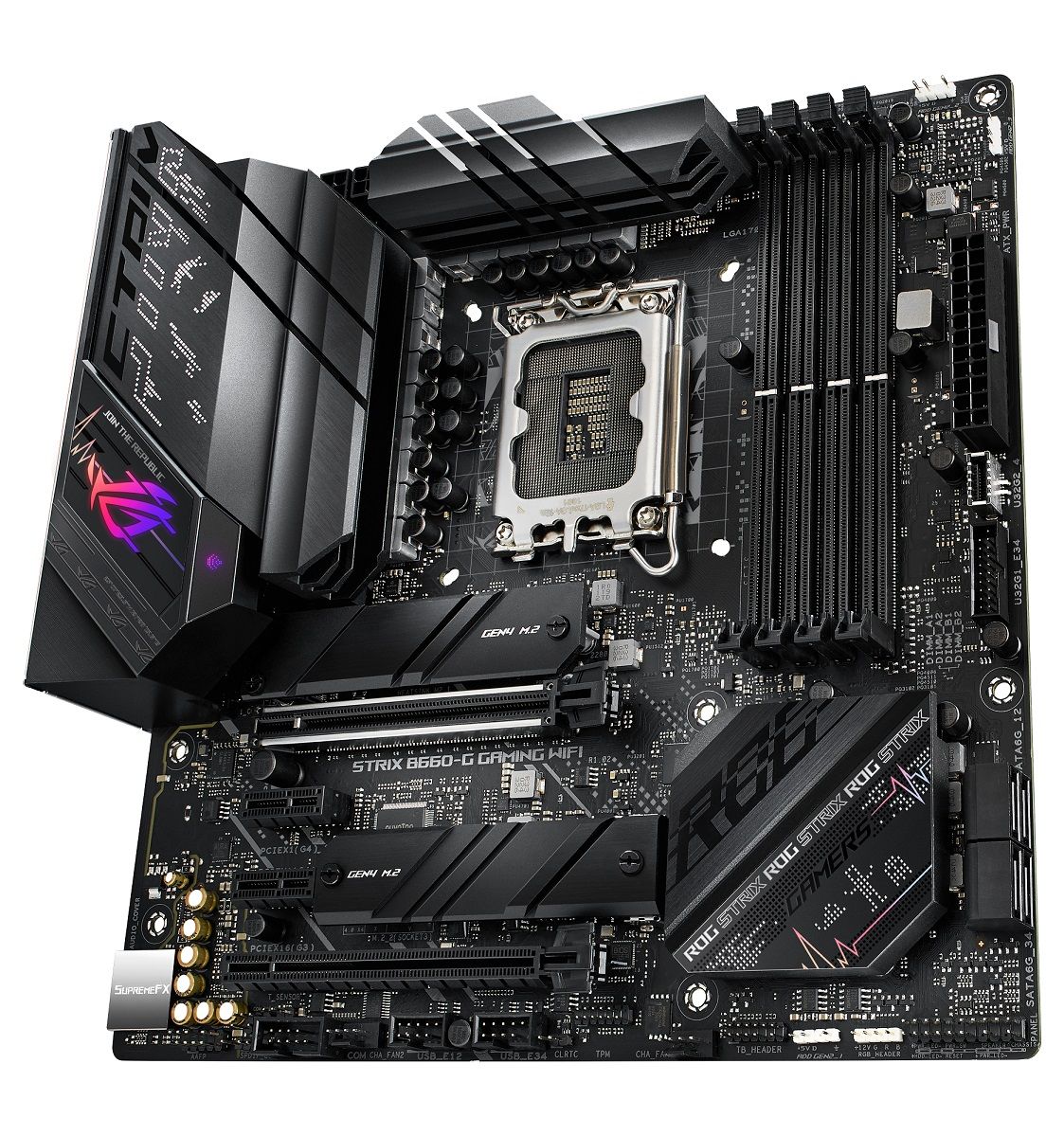 ROG Strix B660-G Gaming WiFi — це найкращий вибір для любителів, яким подобається працювати з добре збалансованою платформою на базі microATX. Його потужні радіатори та потужність преміум-класу розкривають всю силу процесорів Intel® Core™ 12-го покоління, які повністю підтримують пам’ять DDR5 і PCIe® 5.0.