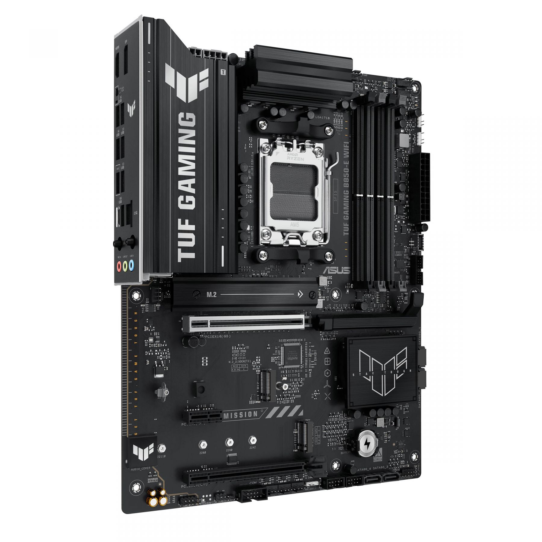 Материнська плата ASUS TUF GAMING B850-E WIFI розкриває всі основні можливості новітньої платформи AMD Ryzen, доповнюючи їх ексклюзивними геймерськими функціями й надійністю, перевіреною часом. Відбірна елементна база, удосконалена система живлення та сумісність із різними системами охолодження – ця материнська плата надає все для того, щоб отримати гарантовану й максимальну швидкодію в іграх.