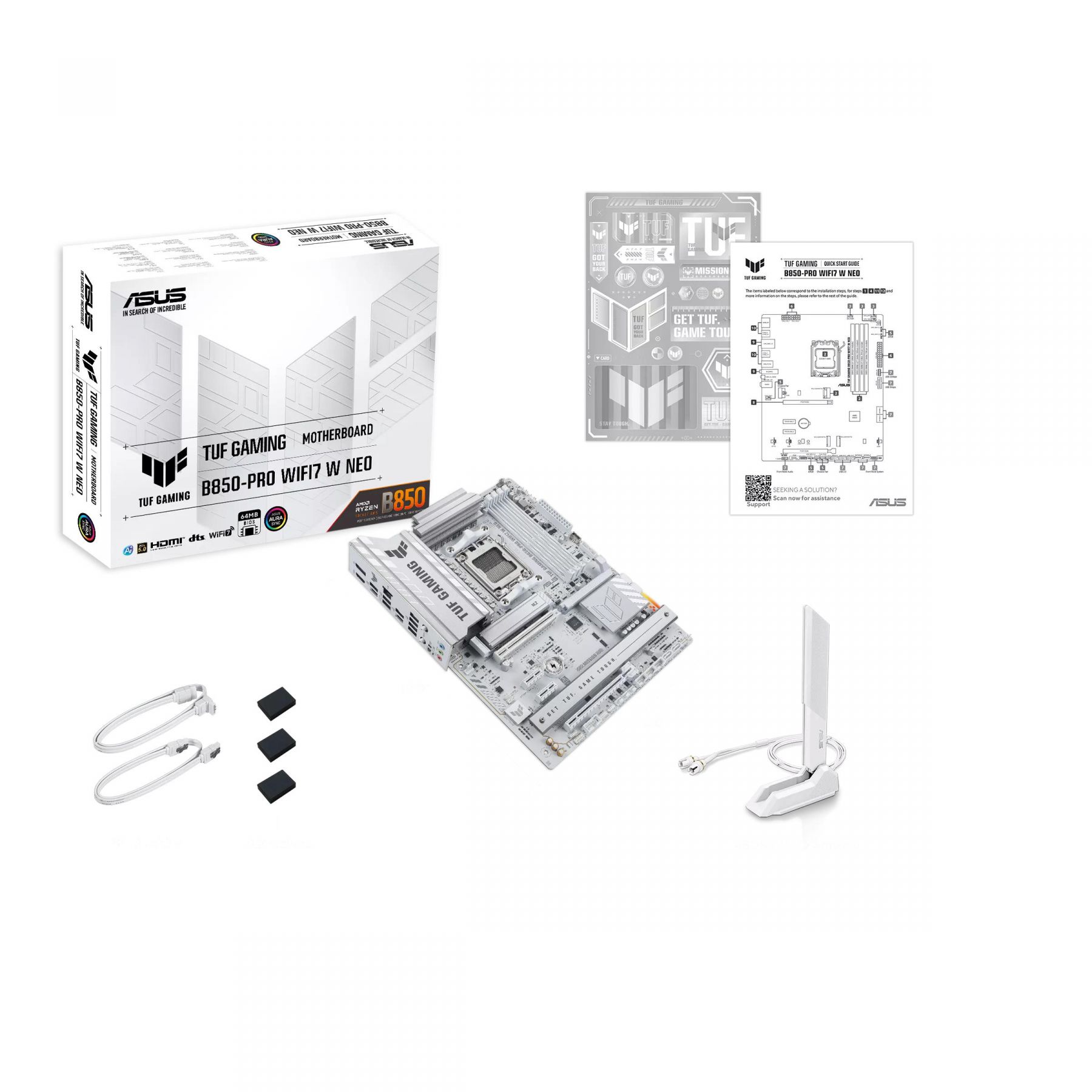 Материнcька плата ASUS TUF GAMING B850-PRO WIFI7 W NEO sAM5 B850 2xDDR5 M.2 HDMI DP Wi-Fi BT ATX білий