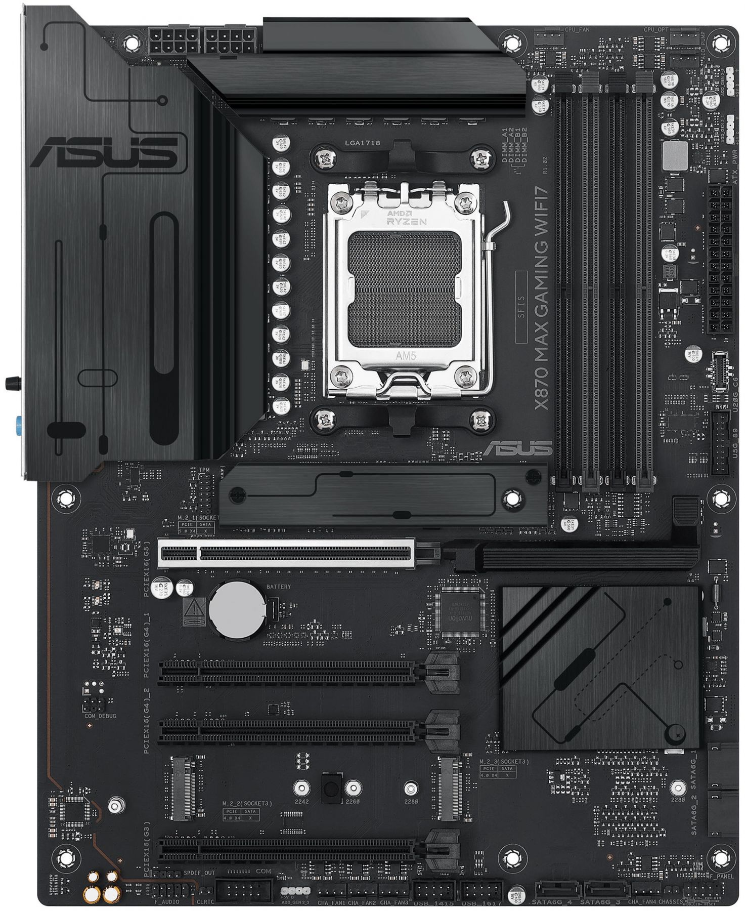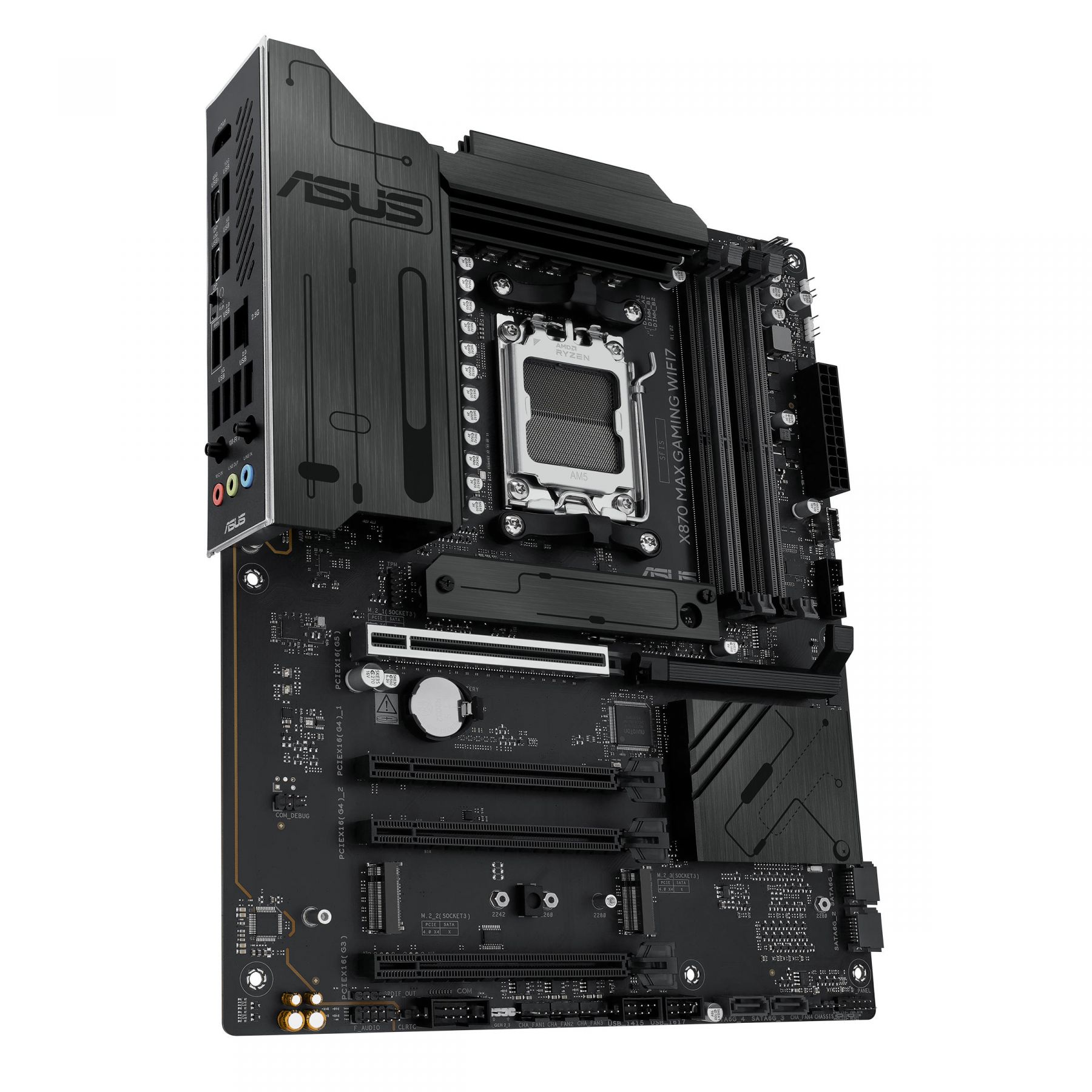 Материнські плати ASUS серії X870 розроблені спеціально для того, щоб розкрити весь потенціал процесорів AMD Ryzen 9000-ї серії. Материнська плата X870 MAX GAMING WIFI7, що має надійну конструкцію, комплексні рішення для охолодження й інтелектуальні можливості настроювання, надає користувачам і складальникам ПК низку можливостей для оптимізації продуктивності за допомогою інтуїтивно зрозумілого програмного забезпечення та вбудованих програм.