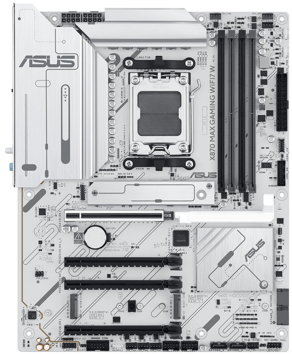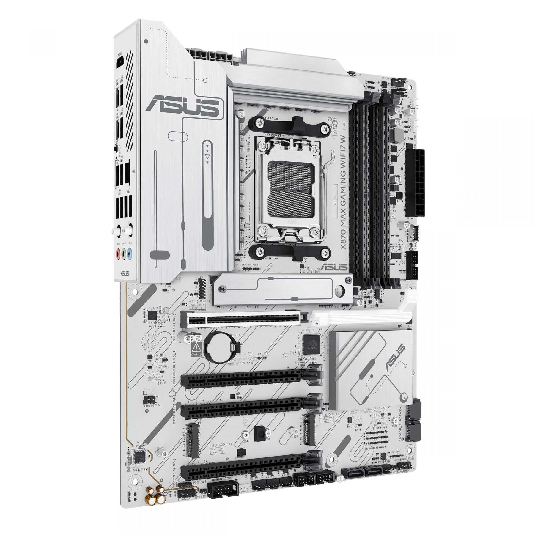 Материнські плати ASUS серії X870 майстерно розроблені для розкриття повного потенціалу процесорів AMD Ryzen серії 9000. Материнська плата X870 MAX GAMING WIFI7 W з потужною конструкцією, комплексними рішеннями для охолодження та інтелектуальними можливостями налаштування надає користувачам і тим, хто збирає комп'ютери своїми руками, низку можливостей для оптимізації продуктивності завдяки інтуїтивно зрозумілому програмному забезпеченню та вбудованому програмному забезпеченню. Вона сумісна з комп'ютерами з розширеними можливостями штучного інтелекту, пропонуючи потужність і можливості підключення, необхідні для вимогливих додатків зі штучним інтелектом.