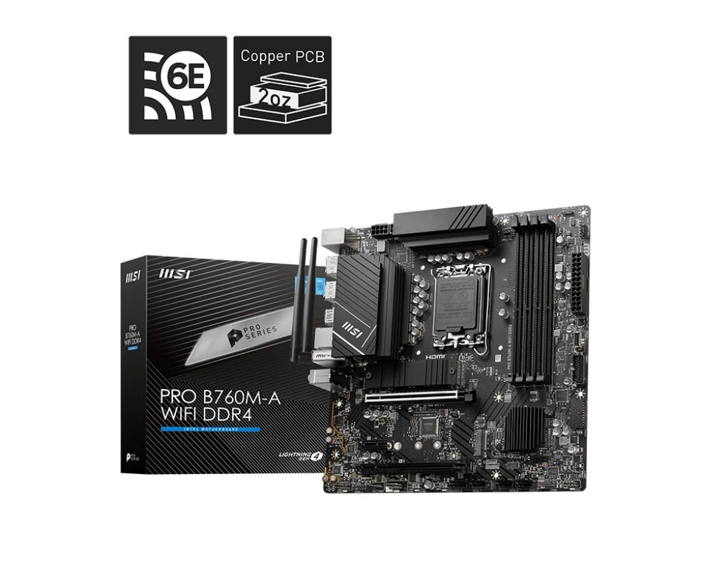Серія PRO пропонує користувачам усе необхідне, забезпечуючи стабільну та продуктивну роботу. PRO B760M-A WIFI DDR4 підтримує процесори Intel Core 12-го/13-го поколінь, Pentium Gold і Celeron для сокету LGA 1700.