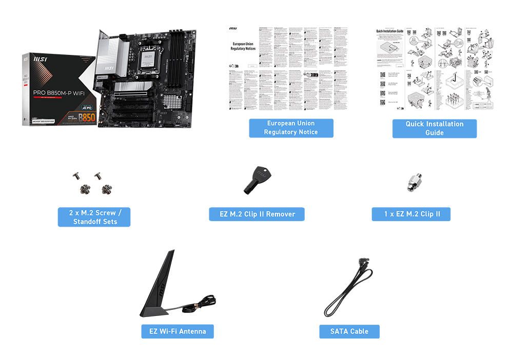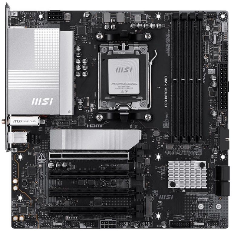 PRO B850M-P WIFI має простий дизайн з гармонійною сріблястою кольоровою гамою, яка відмінно поєднується як з білими, так і з чорними ПК. Вона розроблена з багатьма ексклюзивними функціями MSI, Wi-Fi 7 з EZ Antenna, 5G LAN, PCIe 5.0 M.2 з EZ M.2 Shield Frozr II та додатковим живленням PCIe. Готова для процесорів AMD Ryzen серії 9000.