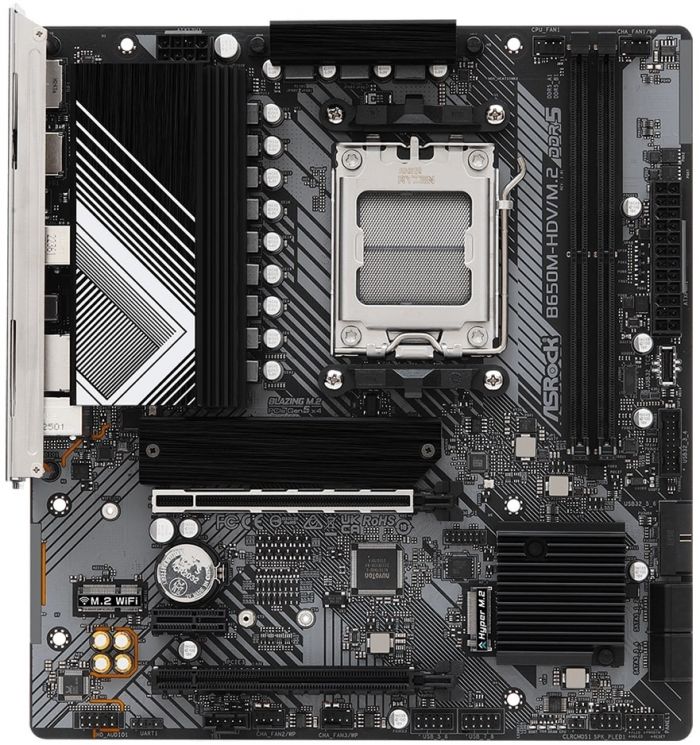 B650M-HDV/M.2 - материнська плата для процесорів AMD Socket AM5 Ryzen серії 7000 з фазою живлення 8+2+1, підтримкою DDR5 6400+ МГц (OC), інтегрованою графікою AMD RDNA 2 і мережею Dragon 2.5G.
