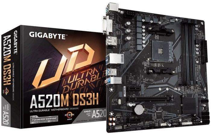 Материнська плата GIGABYTE A520M DS3H A520 AORUS ELITE sAM4 A520 4xDDR4 HDMI DP DVI mATX