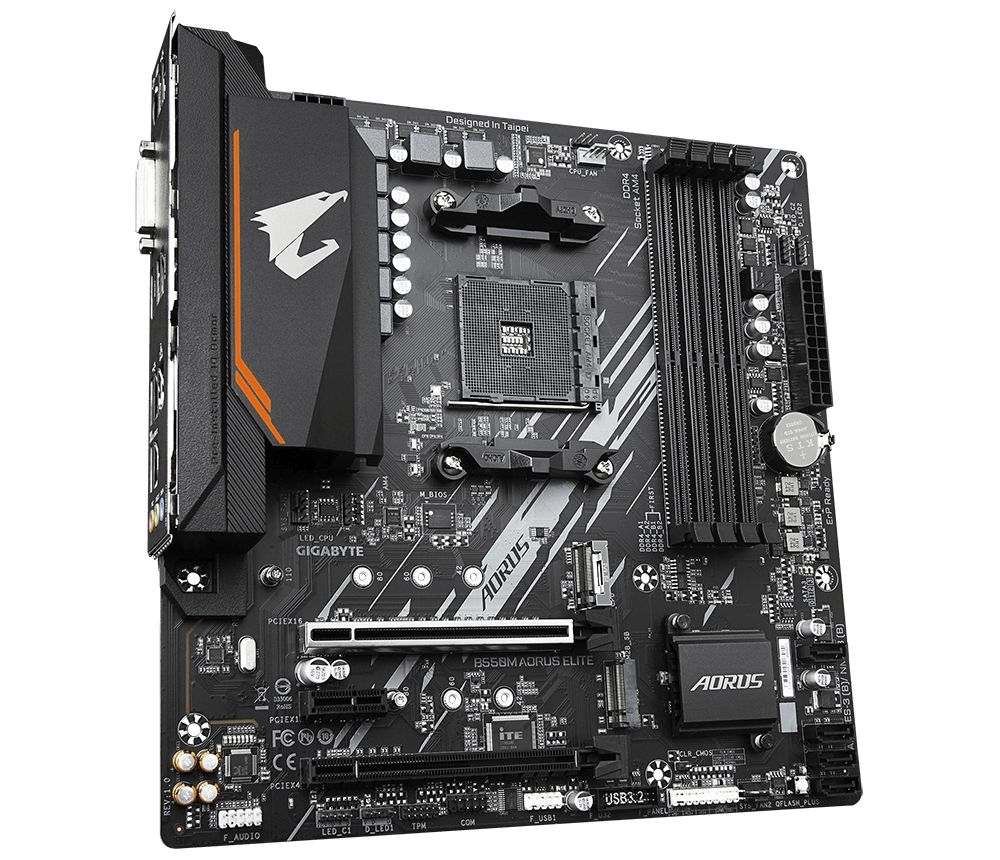 Материнська плата AORUS на базі чіпсета AMD B550, з цифровим VRM-модулем, порт інтерфейсом PCIe 4.0 x16, двома роз'ємами M.2 PCIe 4.0/3.0, ігровим контролером Realtek RTL8118 GbE LAN, технологією Smart Fan 5 і функцією FAN STOP.