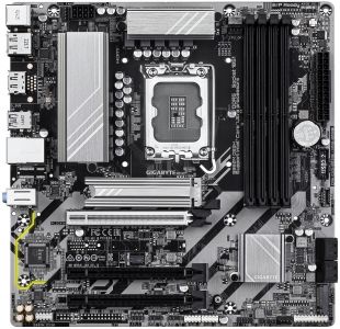 GIGABYTE B860M DS3H – mATX материнська плата на базі чіпсета Intel B860 з підтримкою новітніх процесорів Intel Core Ultra (LGA1851). Оснащена чотирма слотами DDR5 (до 256 ГБ, до 9066 МТ/с OC), підтримує сучасні накопичувачі через M.2 (PCIe 5.0 та 4.0) та 4x SATA. Має HDMI 2.1 і DisplayPort 2.1 для трьох дисплеїв одночасно, Realtek 2.5GbE LAN, сучасні USB-порти, розширене RGB-підсвічування, підтримку Q-Flash Plus та GIGABYTE Control Center.