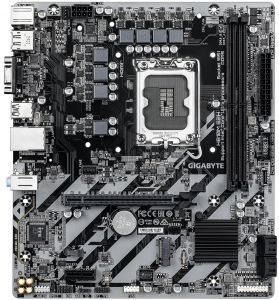GIGABYTE H810M S2H – сучасна материнська плата формату mATX для процесорів Intel Core Ultra (сокет LGA1851) із підтримкою пам’яті DDR5 до 128 ГБ. Оснащена відеовиходами HDMI 2.1, DisplayPort 2.1 і D-Sub із підтримкою до трьох дисплеїв одночасно. Має слот M.2 PCIe 4.0 для швидкого SSD, 4 SATA, гігабітну LAN, 7.1-канальний звук і підтримку S/PDIF.