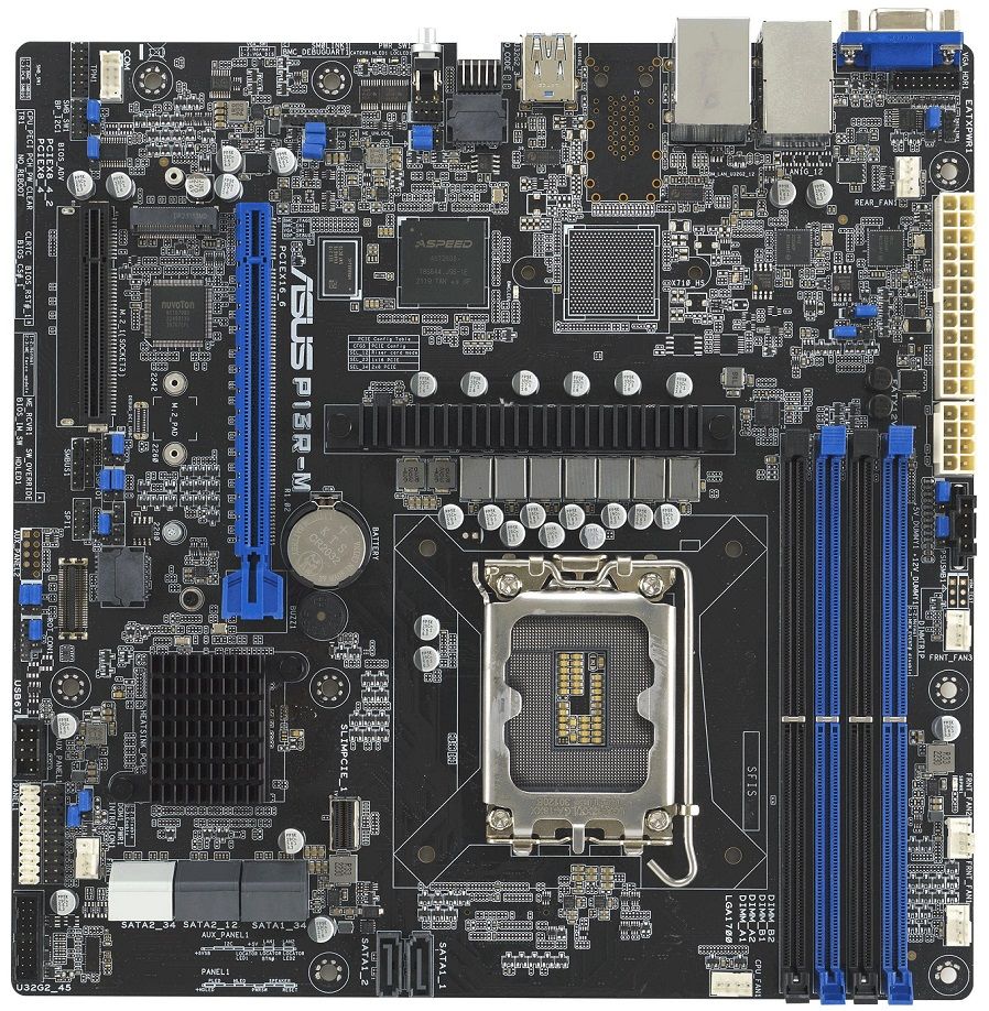ASUS P13R-M – це серверна материнська плата формату microATX з роз’ємом LGA1700 і чипсетом Intel C262, що підтримує процесори Intel Xeon E, Xeon 6300 та Pentium. Має 4 слоти DDR5 (до 128 ГБ), розширення через PCIe 5.0 x16 та PCIe 4.0 x8, а також підтримку сховища через 8 портів SATA3 і M.2 NVMe/SATA.