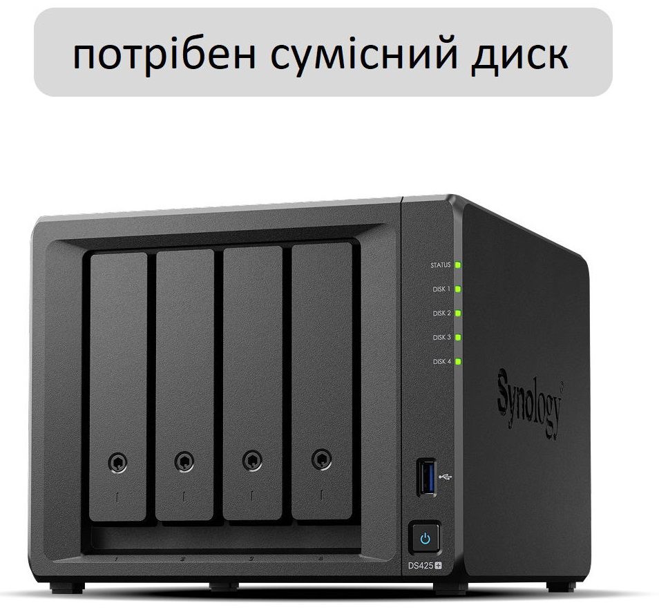 Synology DiskStation DS425+ – це 4-дискове NAS-сховище, створене для надійного збереження даних, резервного копіювання та спільної роботи. Пристрій працює на чотириядерному процесорі Intel Celeron J4125 із підтримкою апаратного шифрування, оснащений 2 ГБ DDR4 пам’яті (розширюється до 6 ГБ) та підтримує HDD і NVMe SSD для кешування. Завдяки портам 2.5GbE та 1GbE і двом USB 3.2 забезпечується швидкий обмін даними.