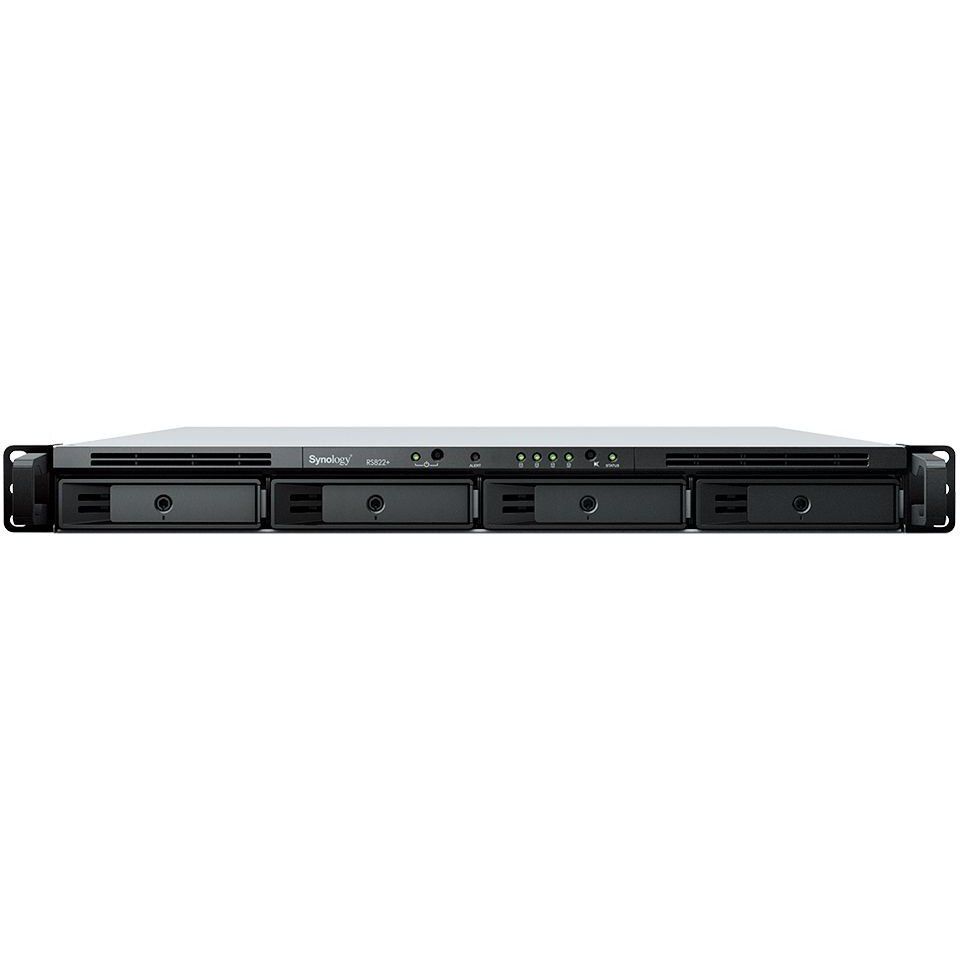 Компактний пристрій Synology RackStation RS822+/RS822RP+ форм-фактора 1U з 4 відсіками та можливістю розширення системи зберігання і можливостей під'єднання в поєднанні з потужною операційною системою Synology DiskStation Manager (DSM) - ідеальне рішення для зберігання даних у філіях і на підприємствах малого та середнього бізнесу.