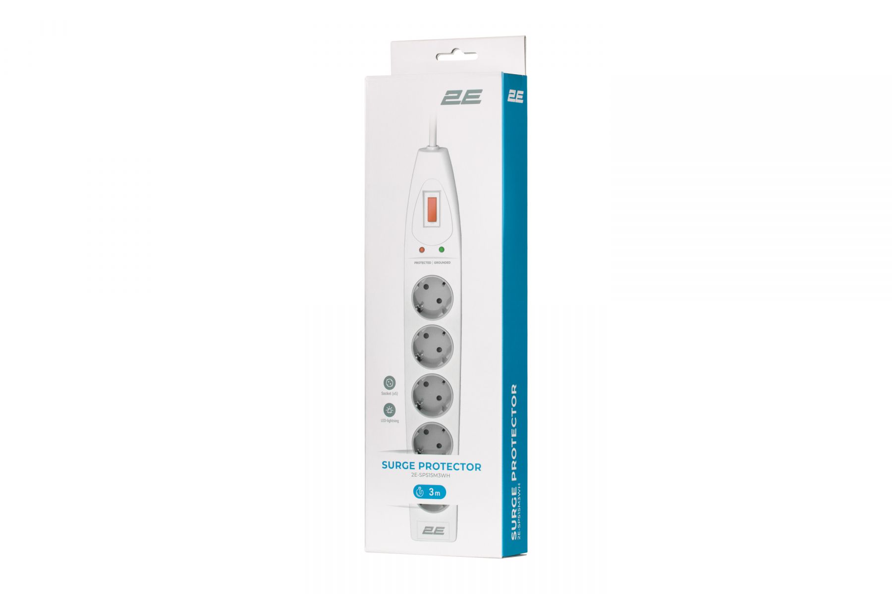 Мережевий фільтр 2E 5XSchuko із захистом від імпульсних стрибків напруги, 3G*1.5мм, 3м, white