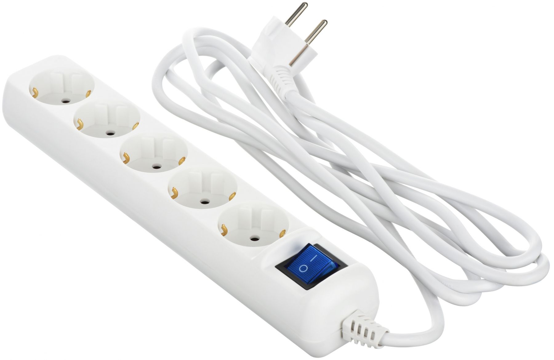 Мережевий подовжувач 2Е 5XSchuko з вимикачем, 3G*1.5мм2, 3м, white