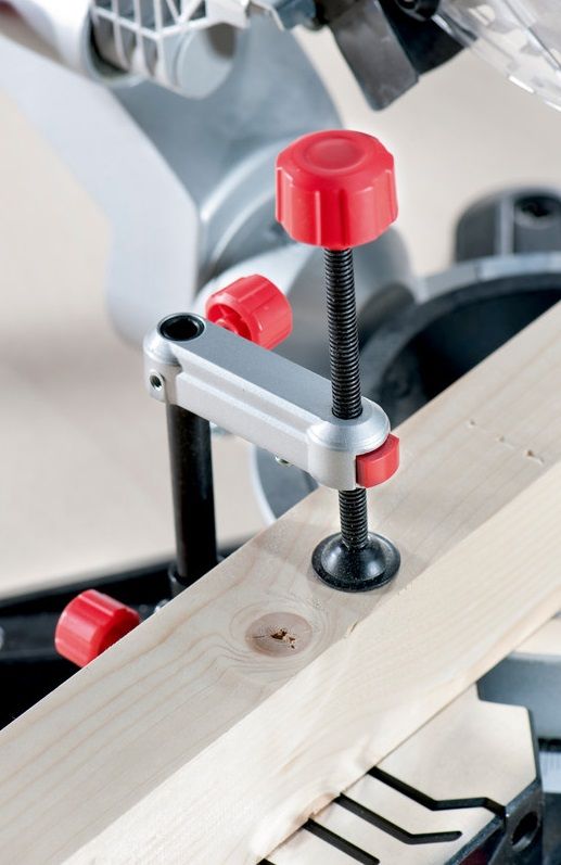Комплектація:пилкове полотно, затискач, мішок для пилу, расширение стола, инструмент для смены пильного диск, намотка кабеля, торцовочный упор