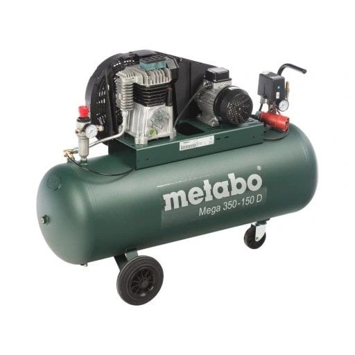 Компресор Metabo Mega 350-150 D - це професійне пристрій з ресивером об'ємом в 150 літрів для забезпечення стабільної подачі повітря під тиском, практичне обладнання незамінне для проведення як побутових, так і професійних робіт. Компресор працює від трифазного струму. Надійний клиноременевий привід гарантує високу стабільність роботи під великими навантаженнями.