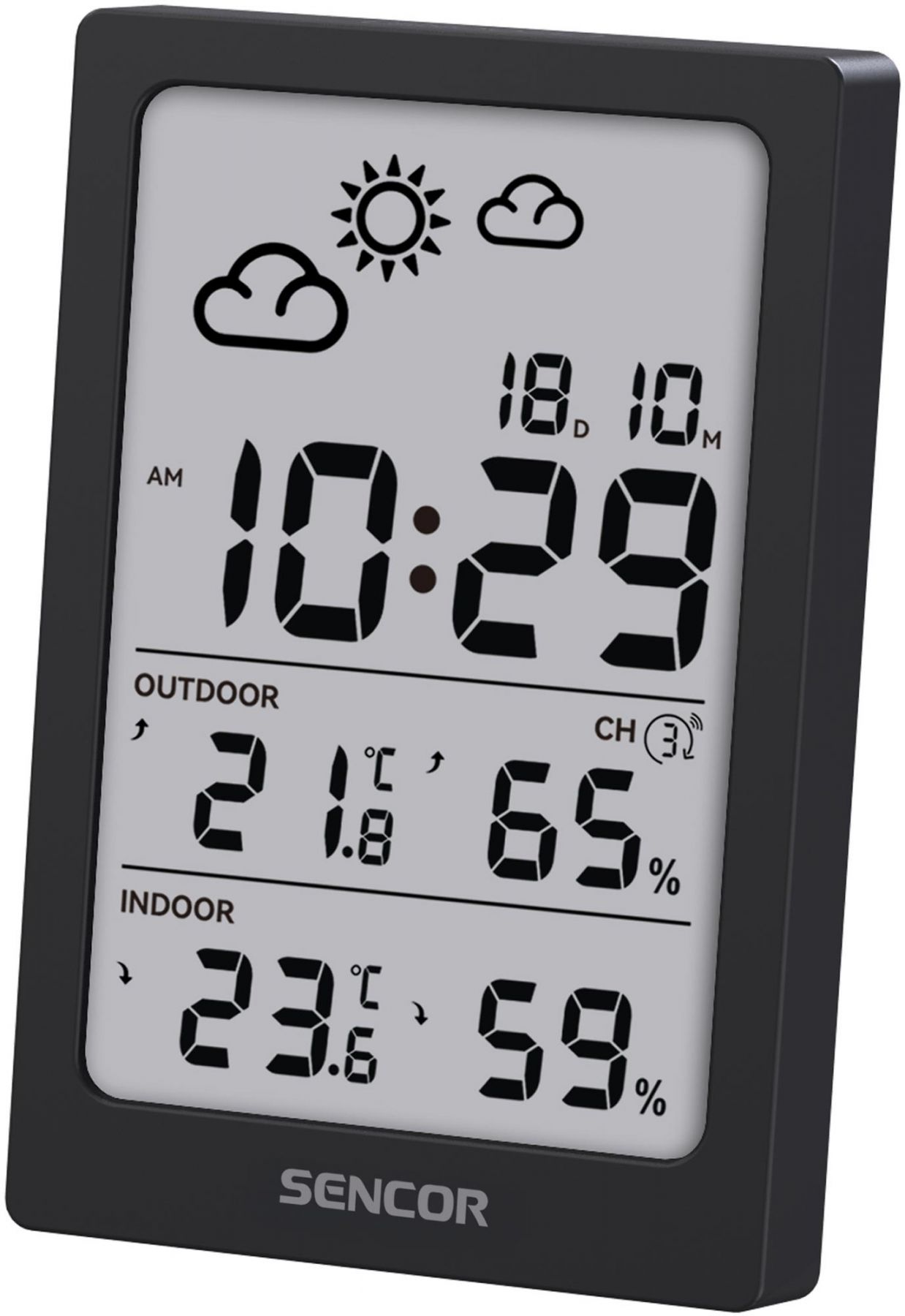 Метеостанція Sencor, внутр/зовн вимірювання, AAAx2+AAx2, темп-ра, вологість, час, чорний