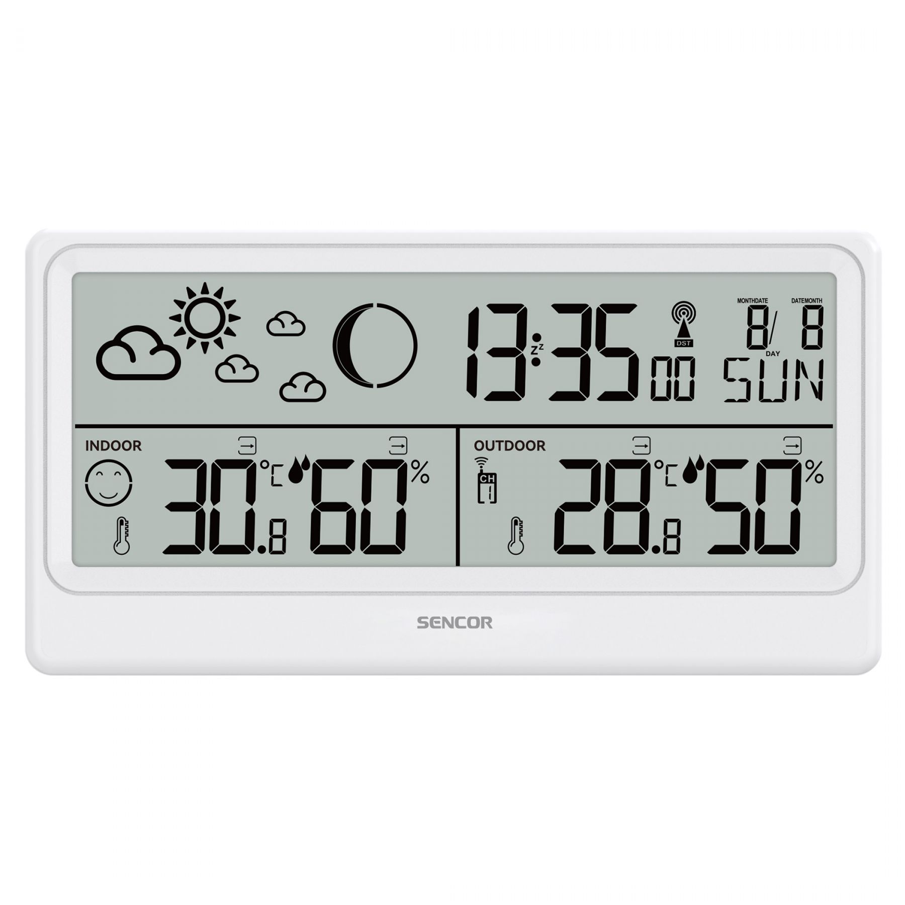Метеостанція Sencor, внутр/зовн вимірювання, від мережі/АААх3+ААх2, темп-ра, вологість, час, прогноз погоди, білий