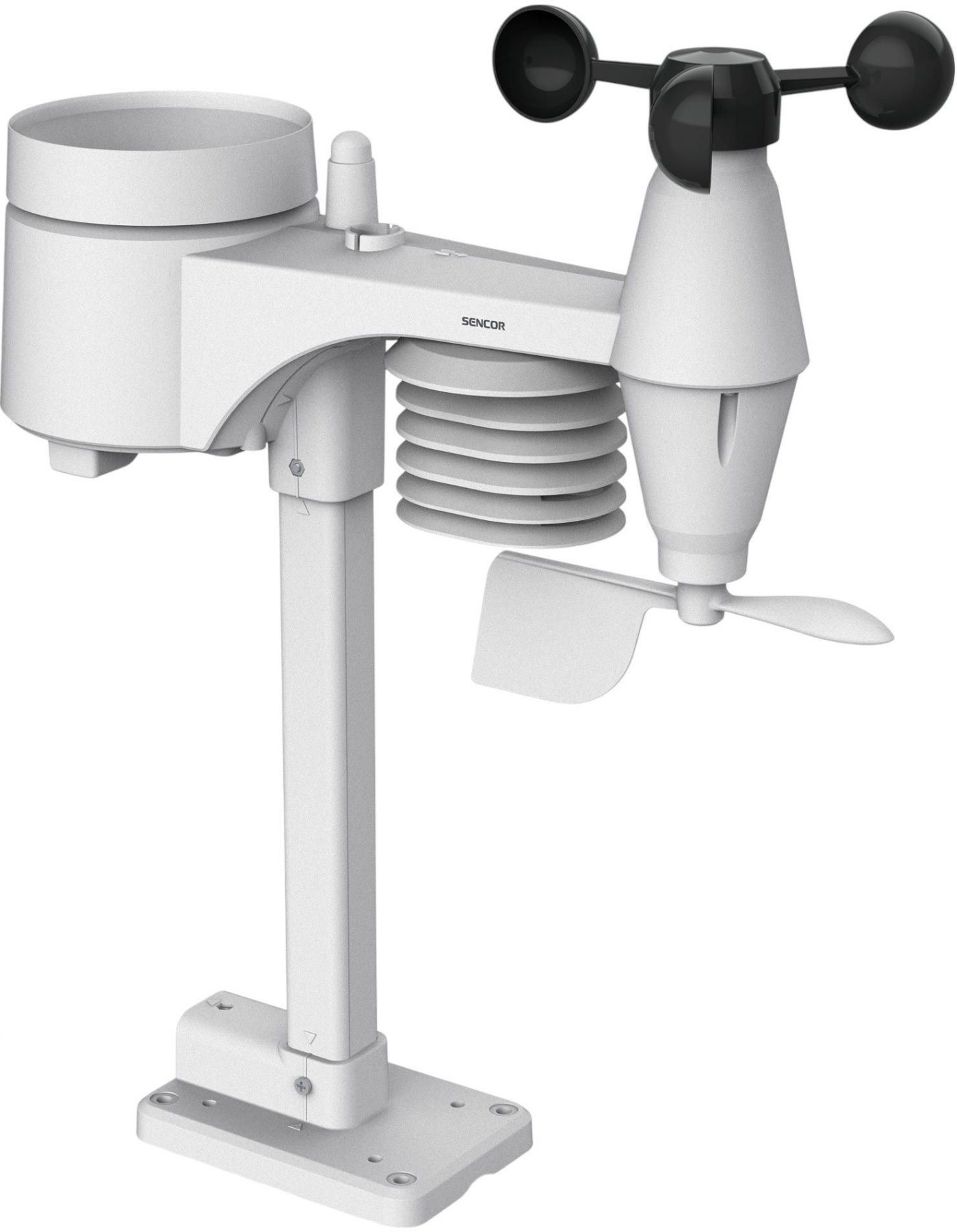 Метеостанція Sencor, внутр/зовн вимірювання, від мережі/CR2032x1+AAx3, темп-ра, вологість, час, прогноз погоди, атмосферний тиск, шв. вітру, чорний