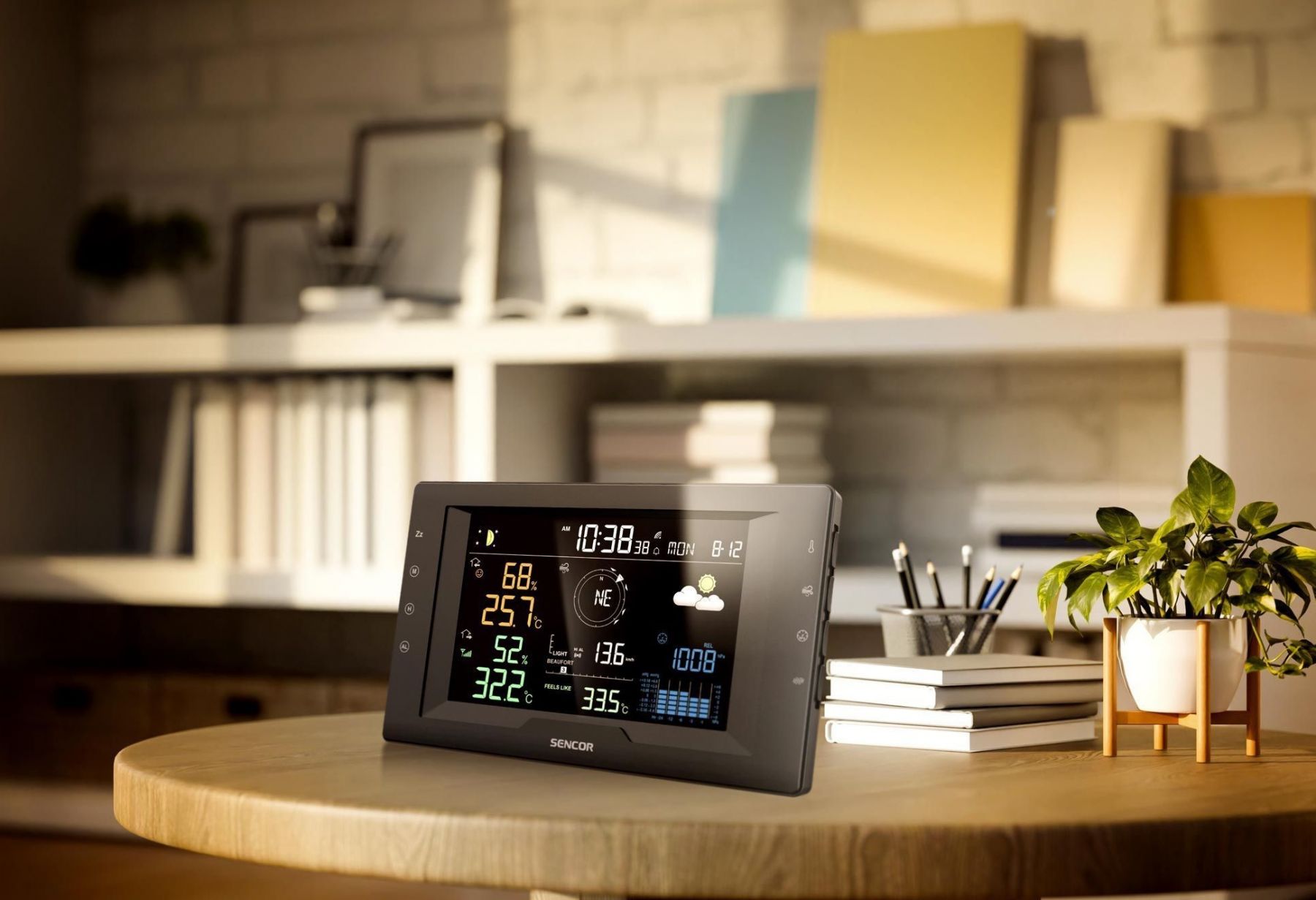 Метеостанція Sencor SWS 9400 з великим кольоровим дисплеєм TRUE BLACK забезпечує точні вимірювання температури, вологості, атмосферного тиску, швидкості та напрямку вітру, а також кількості опадів. Оснащена датчиком 5-в-1 та високоточними сенсорами SENSIRION, вона пропонує прогноз на 12–24 години та історію даних. Бездротовий датчик працює на відстані до 150 м.
