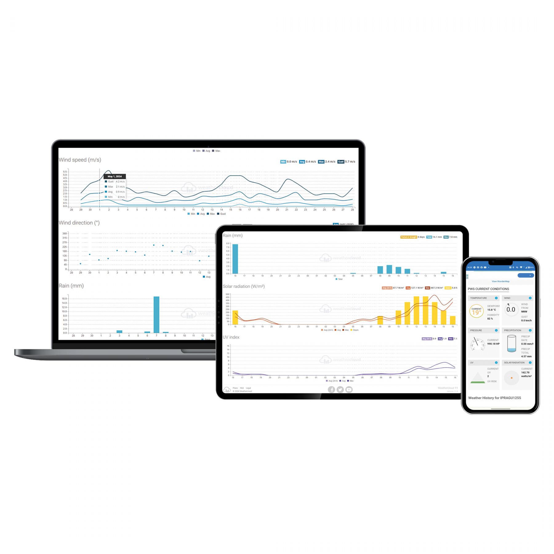 Професійна метеостанція Sencor WiFi 7-в-1 забезпечує точні вимірювання температури, вологості, атмосферного тиску, швидкості та напрямку вітру. Великий кольоровий дисплей із трирівневою яскравістю зручно відображає прогноз погоди, фазу місяця та інші показники. Підтримка Wi-Fi дозволяє синхронізувати дані з популярними платформами Weather Underground та Weathercloud. Завдяки сенсорам SENSIRION пристрій забезпечує високу точність вимірювань і стабільну роботу. Ідеальне рішення для дому, офісу або приватної метеостанції.