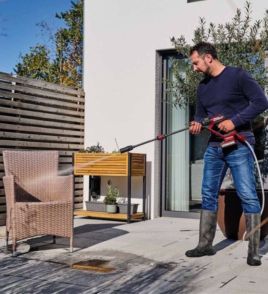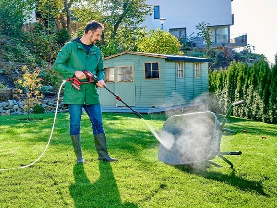 Акумуляторна мийка високого тиску Einhell Hypresso 18/24-1 Li - Solo (24 бар, 240 л/год) забезпечує мобільне прибирання та полив. Має 4-режимну насадку, ECO-режим, можливість самовсмоктування води, пінну насадку, фільтр для ПЕТ-пляшок і захист акумулятора від вологи. Сумісна з Power X-Change. Акумулятор і зарядний пристрій не входять у комплект.