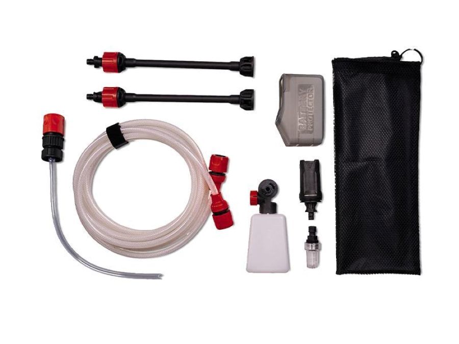 Комплектація:сумка, водяний фільтр, без зарядного пристрою, без акумулятора, всмоктуючий шланг, мінімийка, пінна насадка, 2 подовжувача-трубки, фільтр-адаптер для ПЕТ-пляшок, гумовий чохол для акумулятора