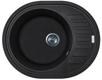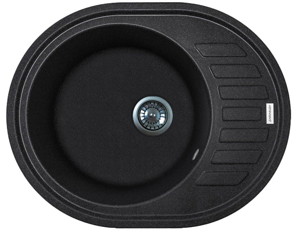 Мийка кухонна Adamant Ovum, штучний камінь, овальна, з крилом, 615х495х200мм, чаша - 1, врізна, чорний