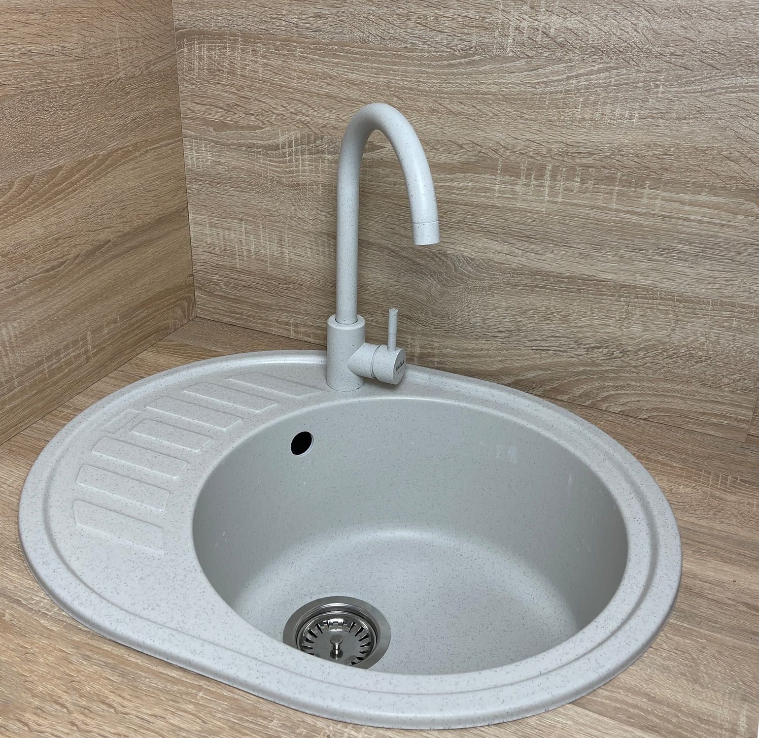 Мийка кухонна Adamant Ovum, штучний камінь, овальна, з крилом, 615х495х200мм, чаша - 1, врізна, Old stone