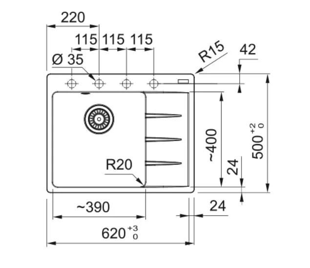 Розміри мийки:620 x 500