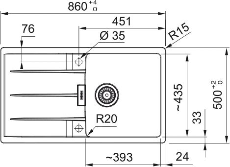 Мийка кухонна Franke Centro, фраграніт, прямокутник, з крилом, 860х500х200мм, чаша - 1, накладна, CNG 611-86, онікс