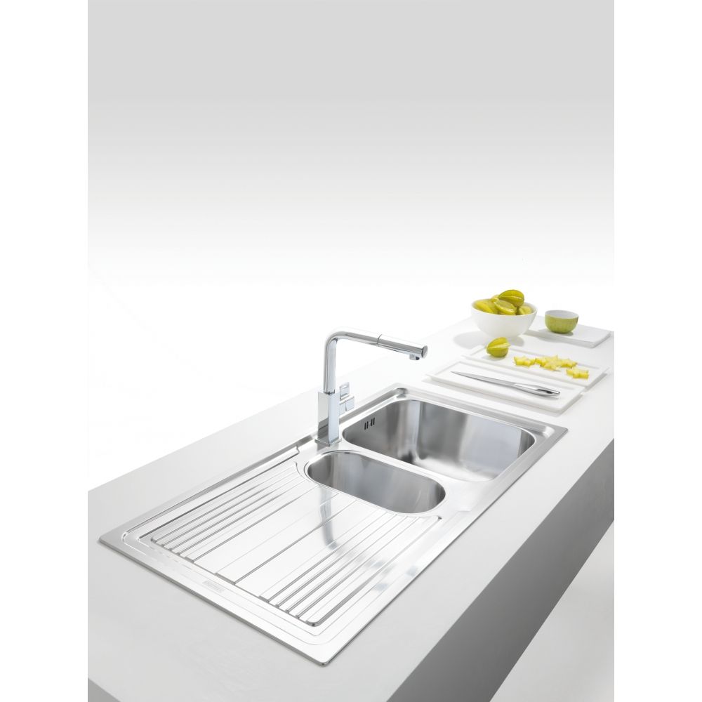 Мийка Franke Logica Line – це мийка з великою і малою чашами, а також функціональним крилом, що служить для сушіння посуду або обробки продуктів. Завдяки нахилу, вода стікає без затримок у чашу мийки. Монтаж цієї раковини franke здійснюється врізним способом – швидко і просто, навіть без спеціальних навичок. Отвір під змішувач передбачений у конструкції.