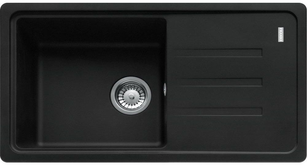 Franke Malta BSG 611-78 — накладна кухонна мийка з крилом розміром 780х435 мм, виготовлена з міцного фраграніту у стильному чорному матовому кольорі.