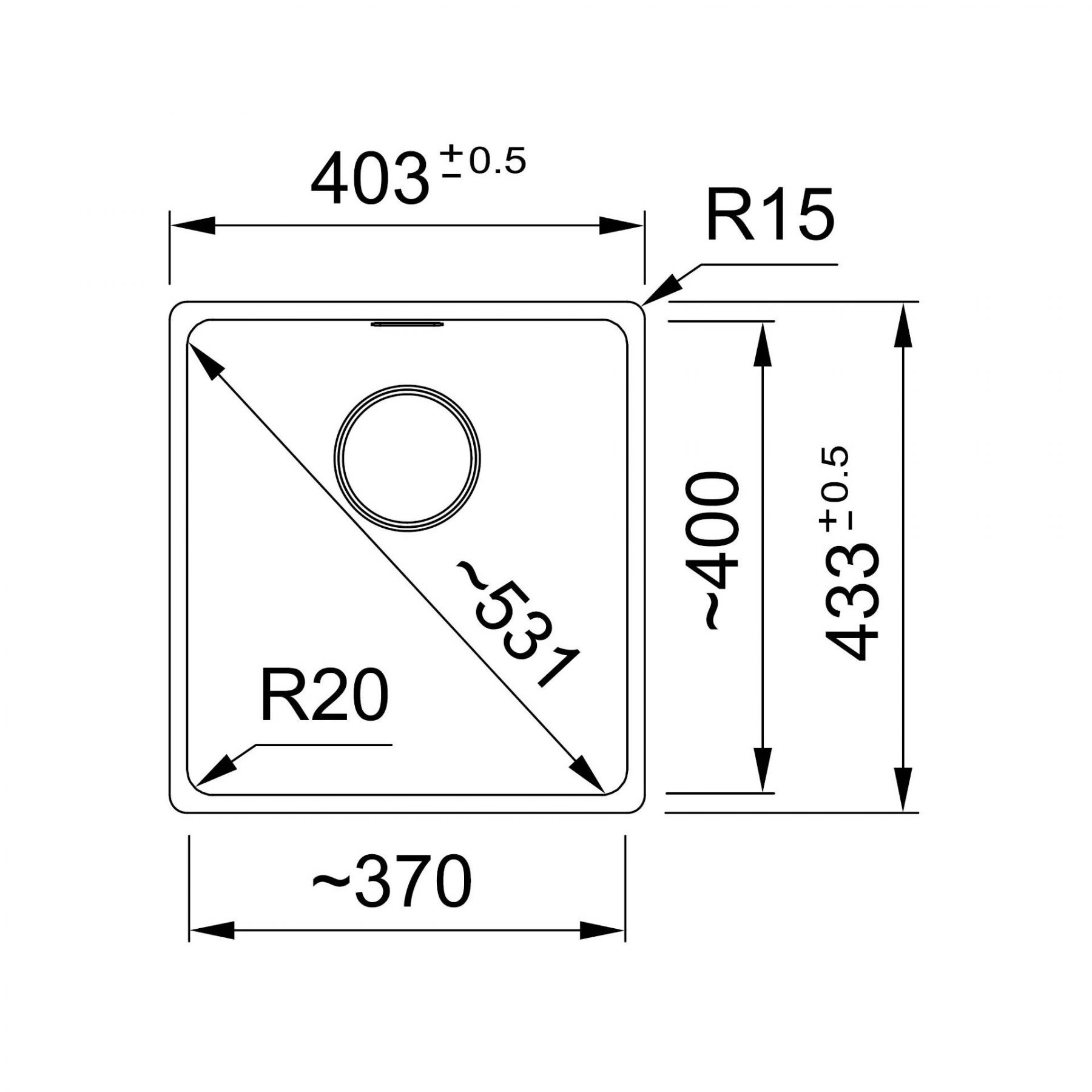Розміри мийки:403 x 433