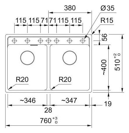 Мийка кухонна Franke Maris, фраграніт, прямокутник, без крила, 760х510х200мм, чаша - 2, врізна, MRG 620 TL, чорний матовий