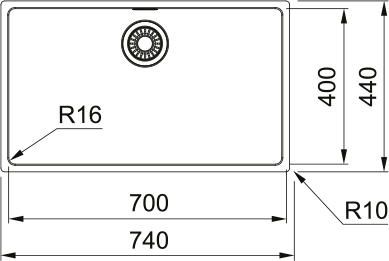 Мийка кухонна Franke Maris, нерж.сталь, прямокутник, без крила, 740х440х180мм, чаша - 1, монтаж під стільницю, MRX 110-70, нерж